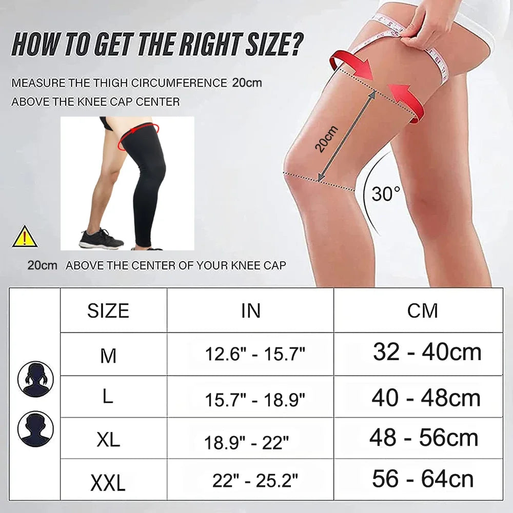 Elastiskt kompressionsskydd för hela benet. Ger stöd vid träning, löpning, cykling och basket samt lindring vid led- och muskelbesvär. Passar både dam och herr.