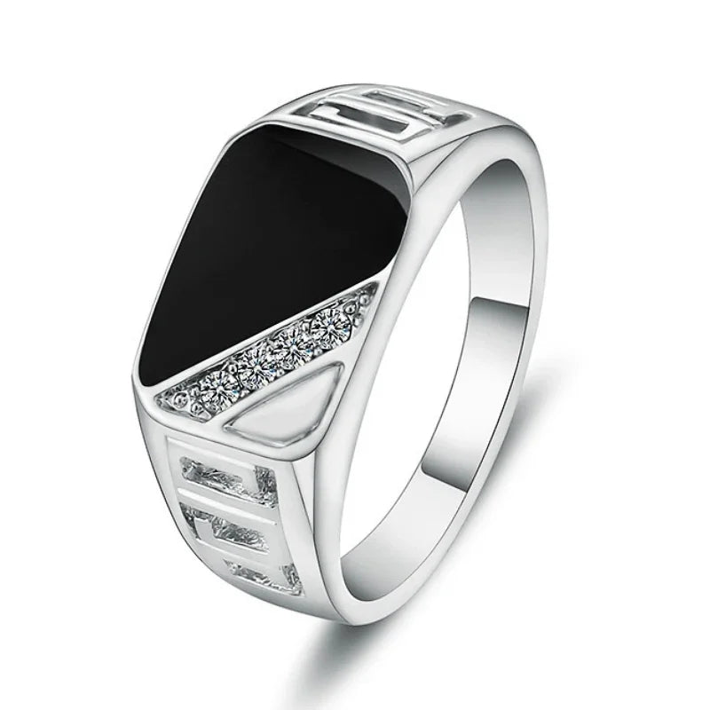 Föreställ dig att bära en ring som inte bara kompletterar din outfit, utan som blir själva samtalsämnet. Den svarta emaljen ger en mystisk och elegant touch, medan de glittrande CZ-stenarna tillför precis rätt mängd glamour. Oavsett om du är på kontoret, ute på middag eller på en speciell fest - denna ring får dig att känna dig självsäker och stilfull.