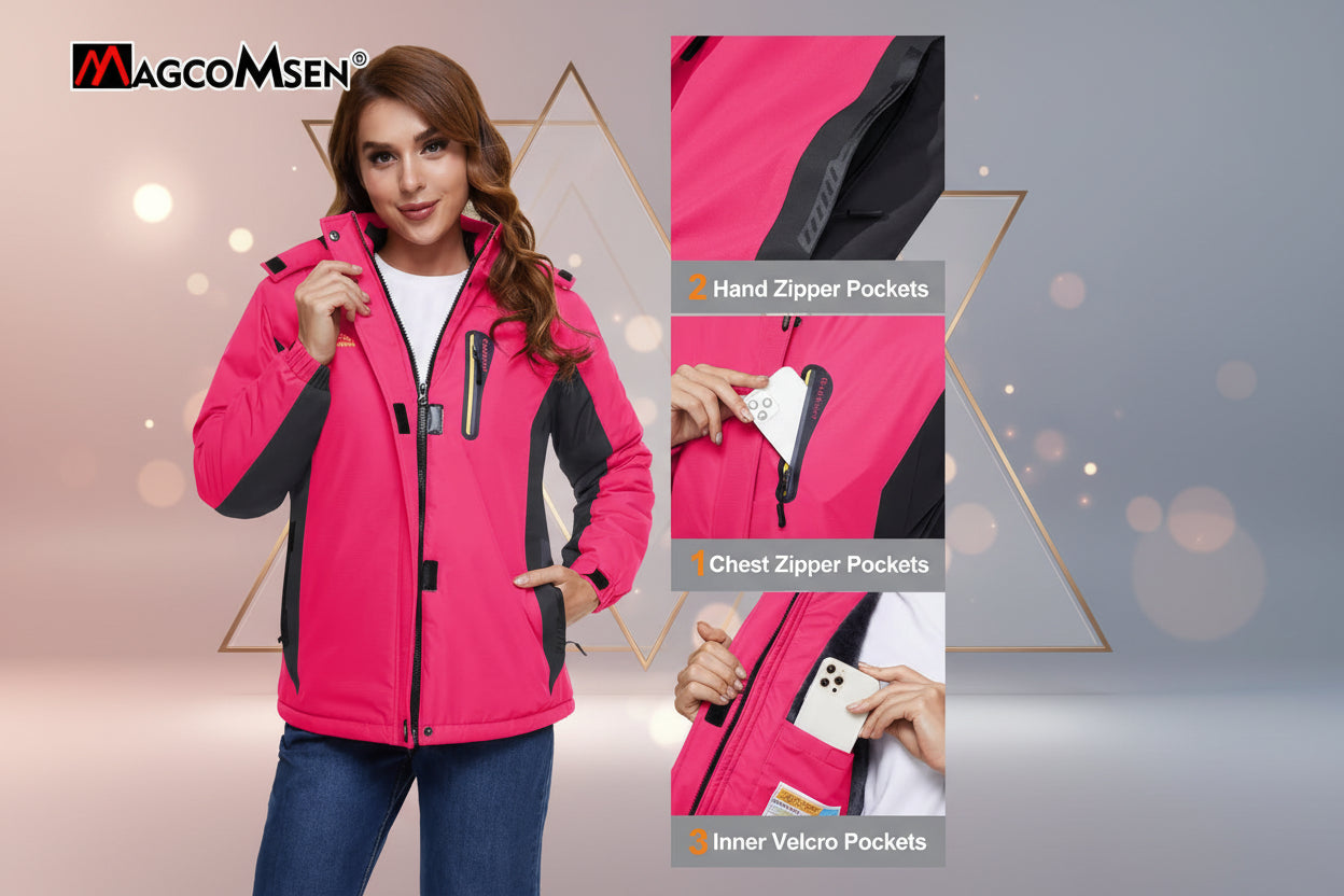 Håll dig varm, torr och bekväm under alla vinteräventyr med MAGCOMSENs damjacka. Fleecefodrad för extra värme och designad för skidåkning, snowboard, vandring och trekking. Vindtät och slitstark, med smarta funktioner som gör den till ett perfekt ytterplagg för alla outdooraktiviteter i snö och kyla. Stilren, funktionell och redo för vintern.