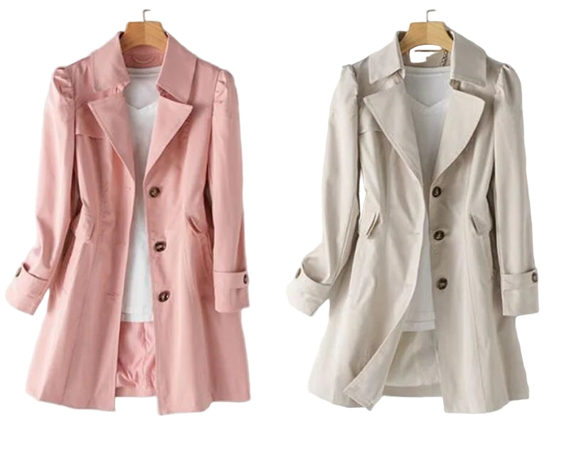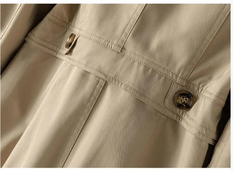 Elegant damtrenchcoat i koreansk stil med dubbelknäppning och midilång design. Perfekt som ytterplagg för vår och höst.