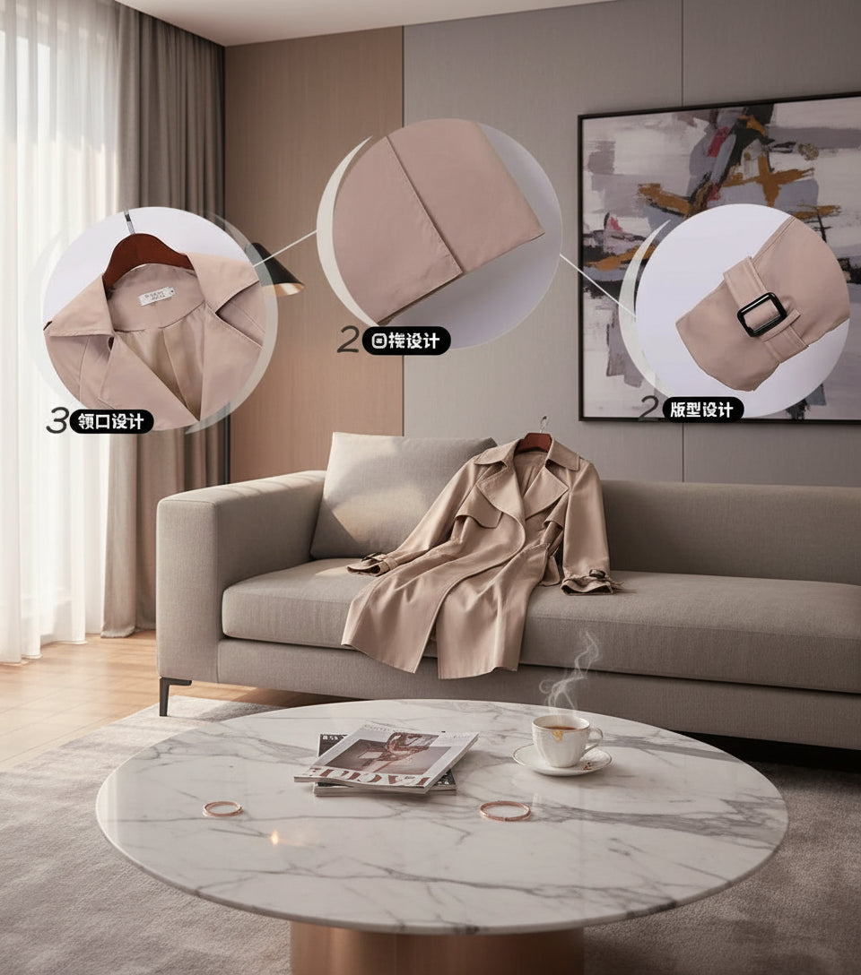 Ge din vår- och sommarstil en sofistikerad touch! Denna eleganta trenchcoat i koreansk design kombinerar klassisk dubbelknäppning med en modern slim passform – perfekt för vardag och fest.