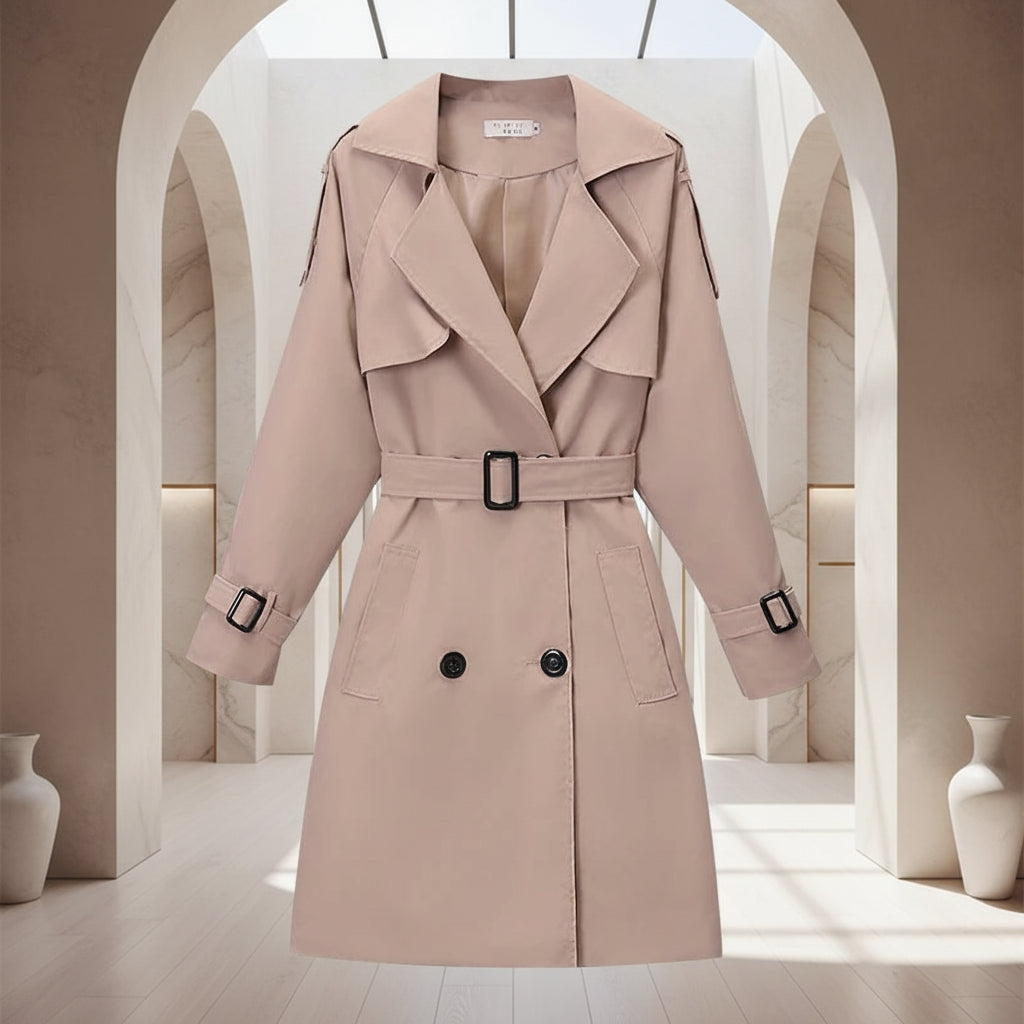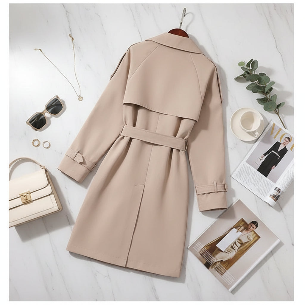 Khaki Trenchcoat för Kvinnor – Dubbelknäppt Windbreaker i Slim Fit