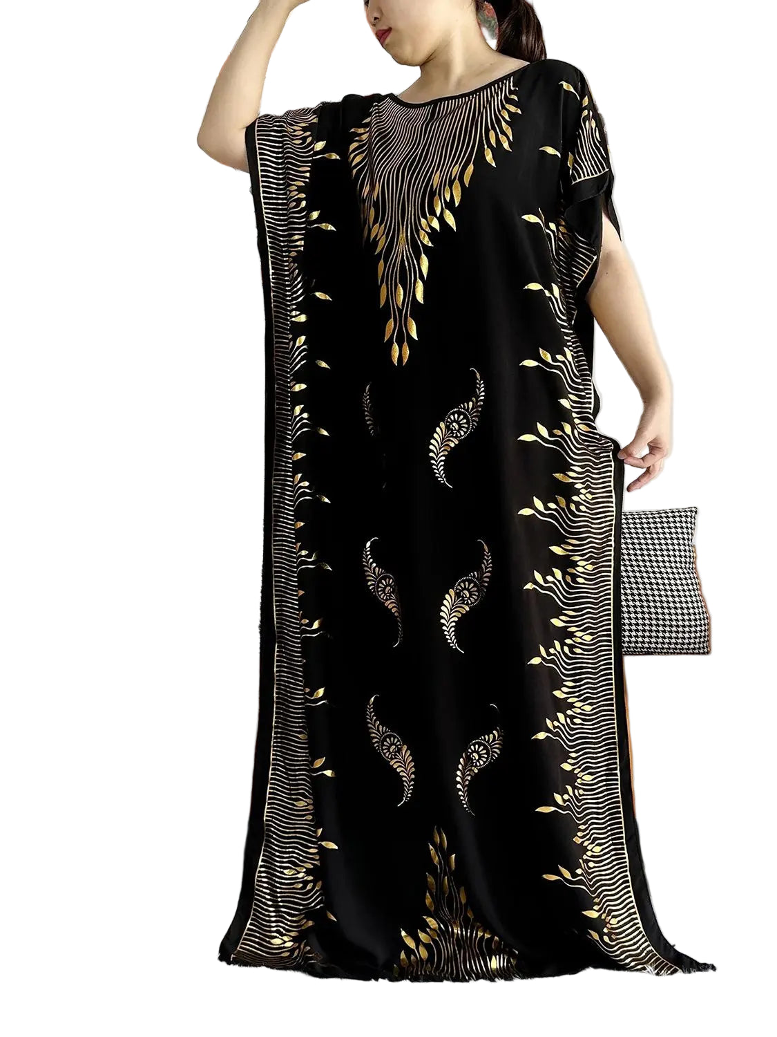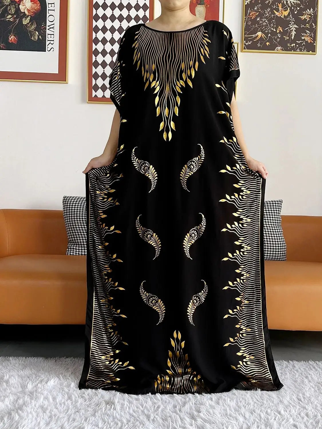 Sommarabaya – Kortärmad med guldfärgade tryck och matchande sjal