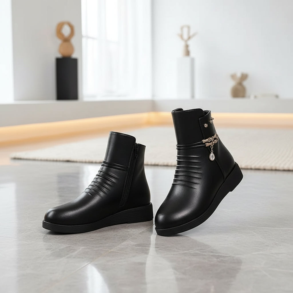 Vinterstövlar för Kvinnor – Äkta Läder med Ullfodring