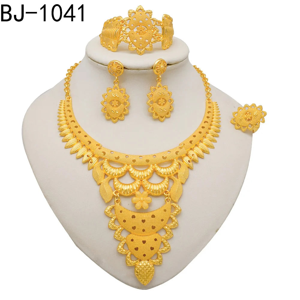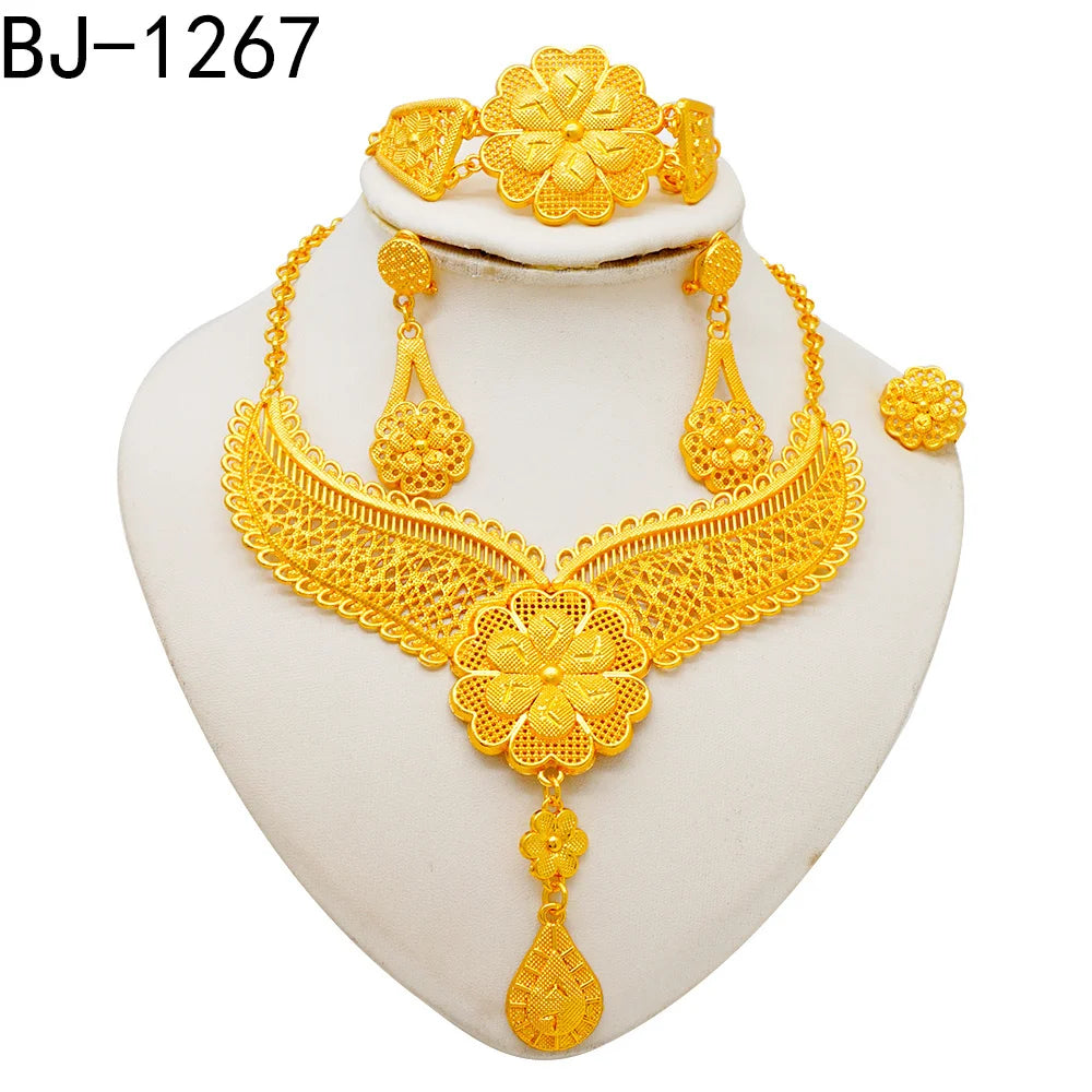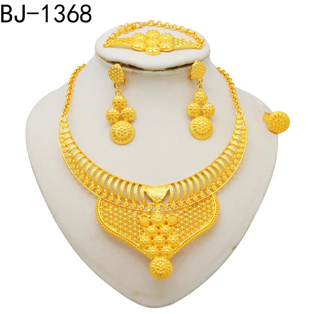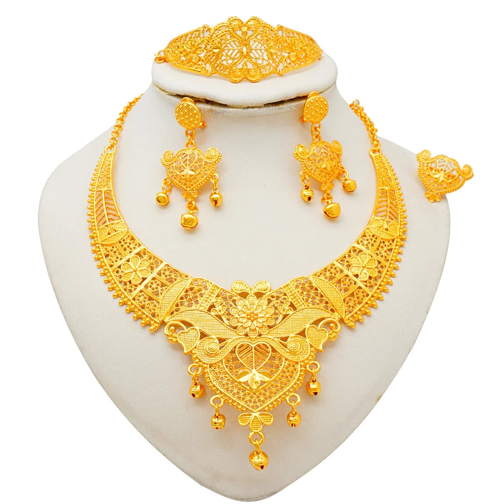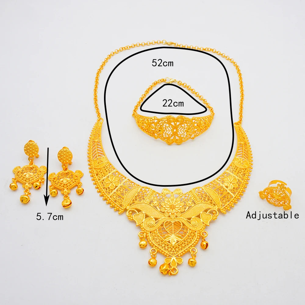 Dubai 24K Guldpläterat Smyckesset - Afrikansk Bröllopskollektion med Halsband & Örhängen