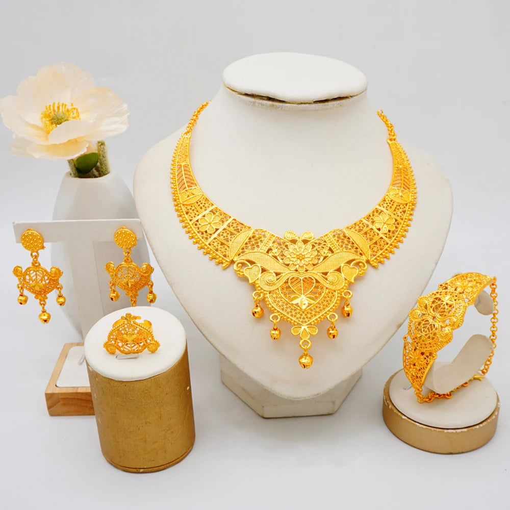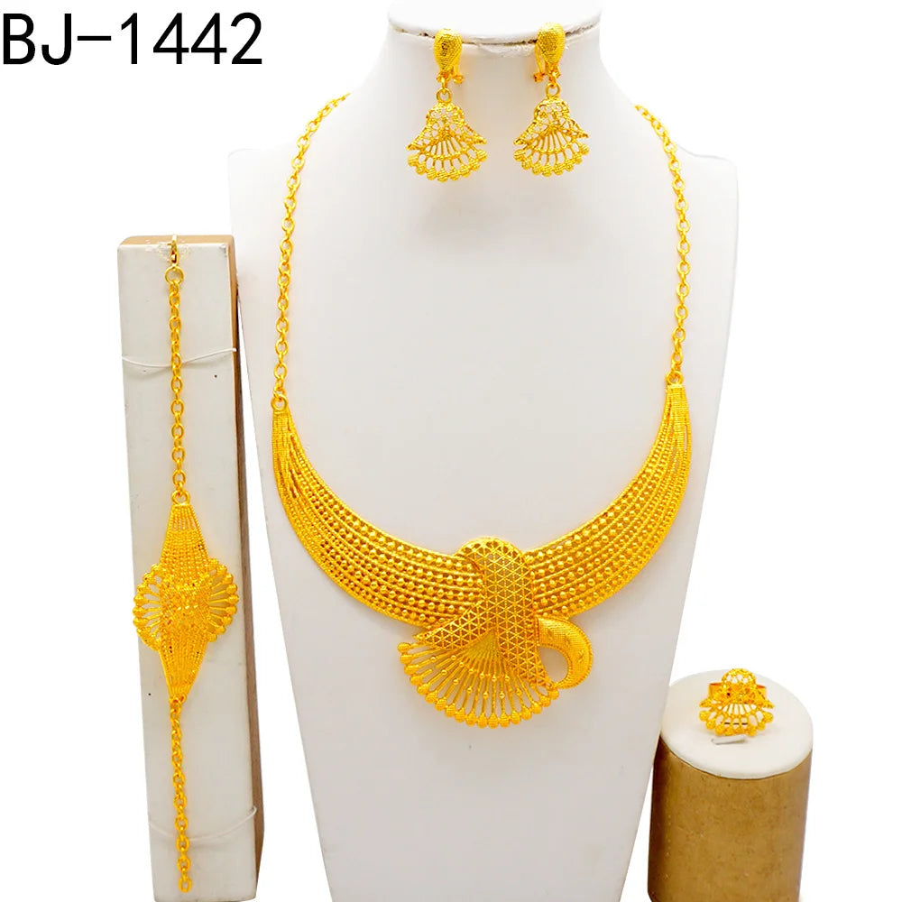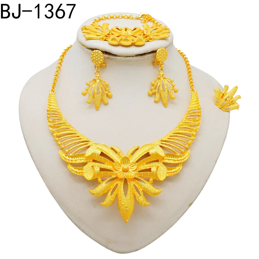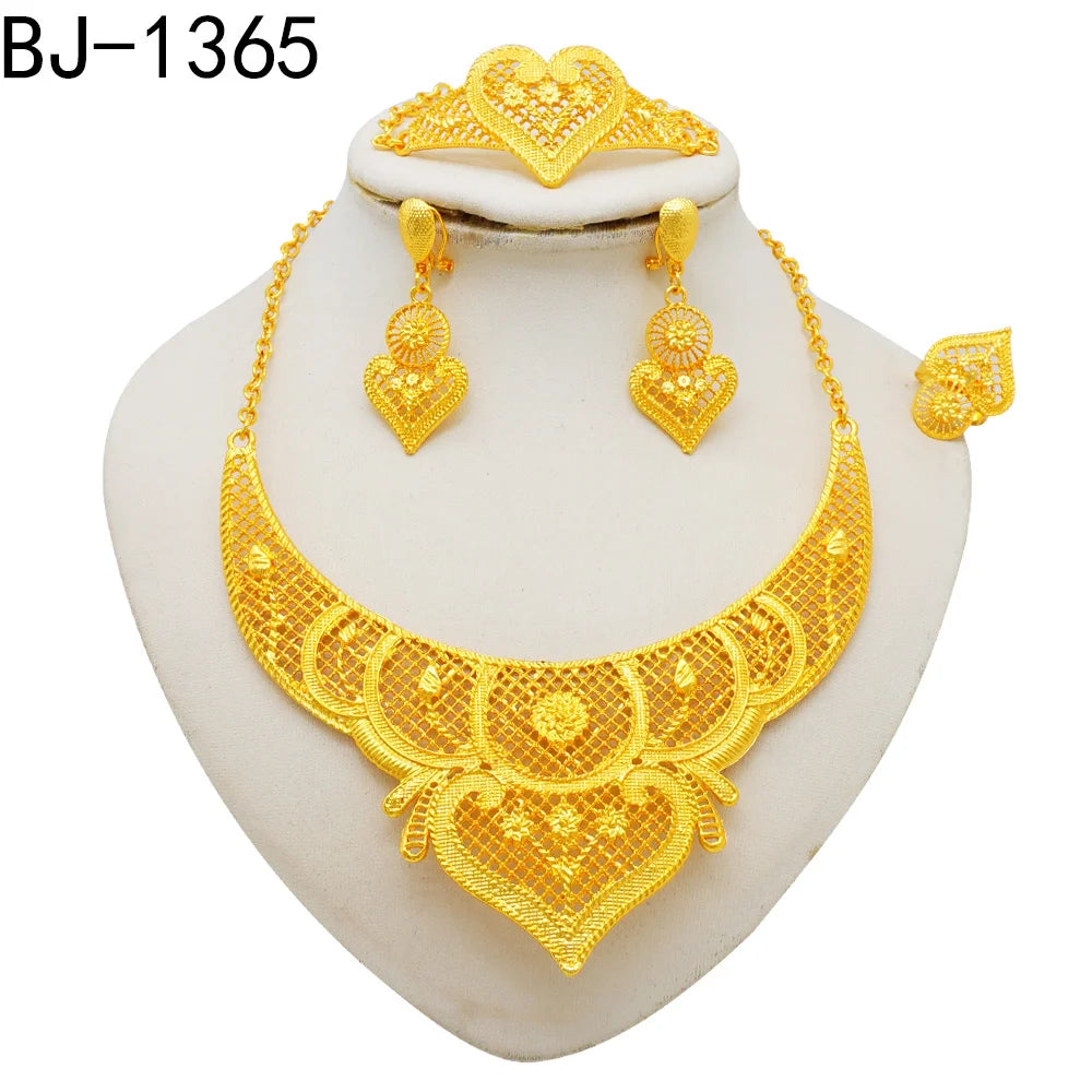 Dubai 24K Guldpläterat Smyckesset - Afrikansk Bröllopskollektion med Halsband & Örhängen