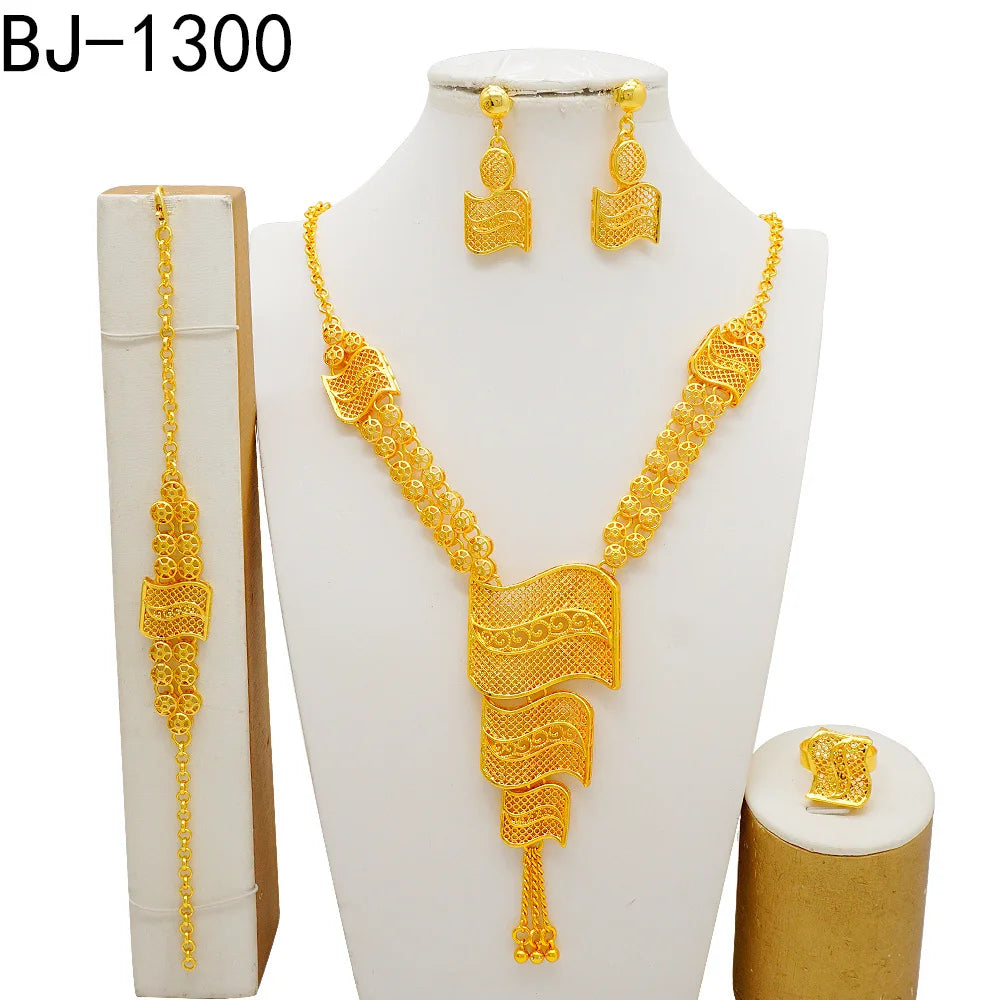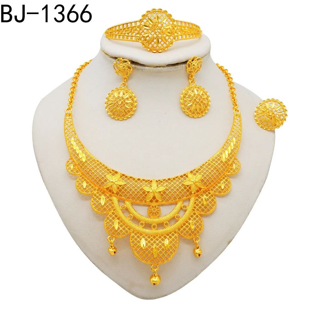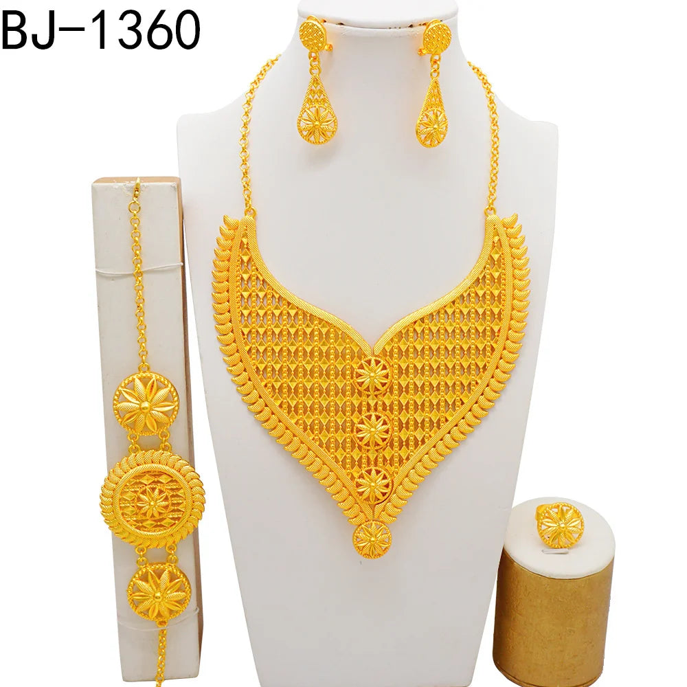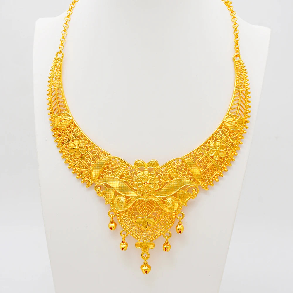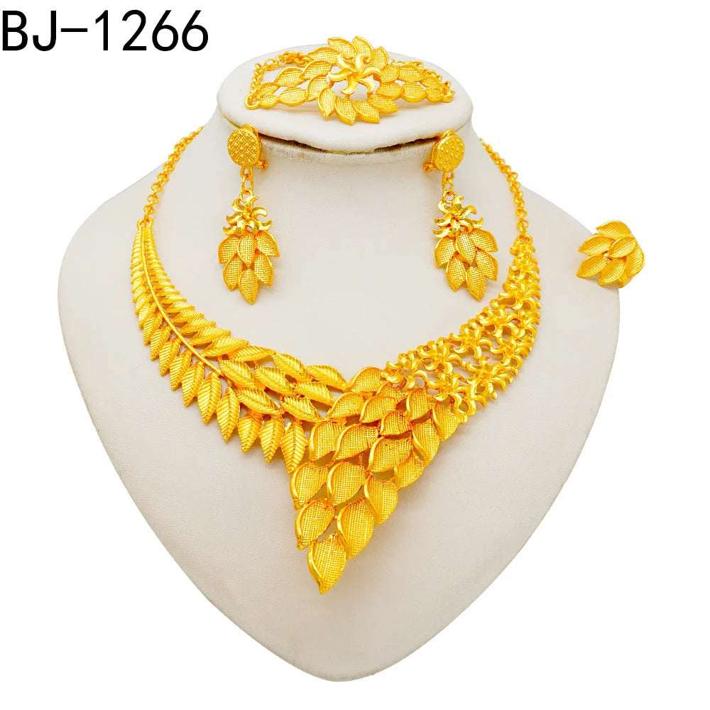 Dubai 24K Guldpläterat Smyckesset - Afrikansk Bröllopskollektion med Halsband & Örhängen