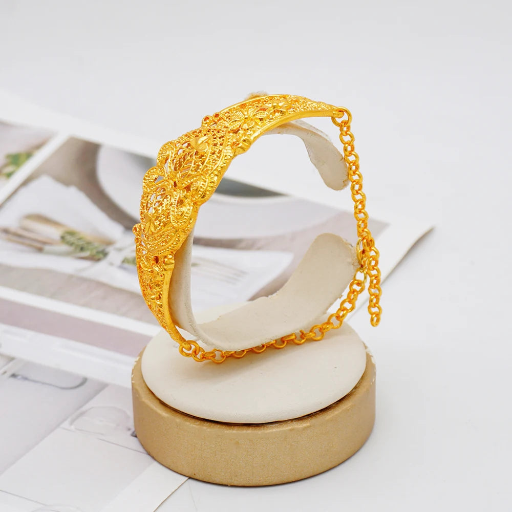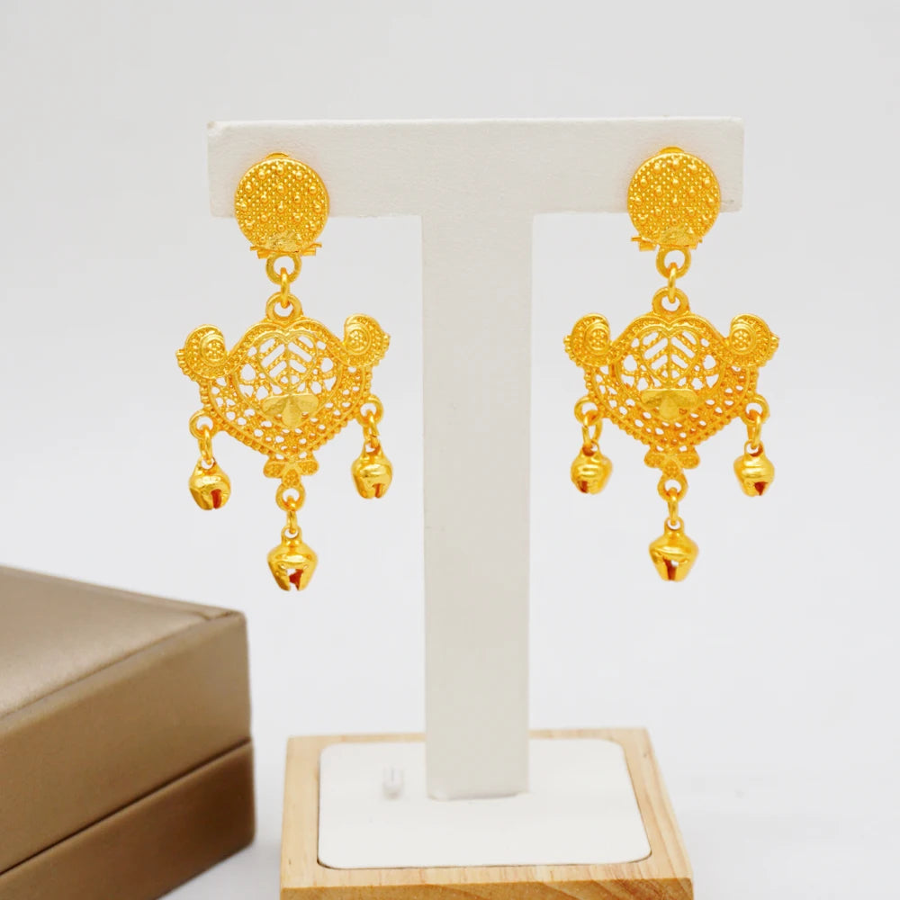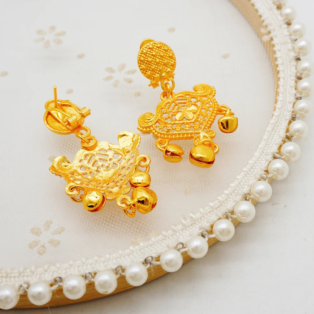 Detta smyckesset är mer än bara accessoarer - det är ett statement av elegans och kulturell rikedom. Varje gång du bär detta set kommer du att känna dig som en drottning. Den utsökta hollow bell-designen fångar ljuset vackert och drar till sig beundrande blickar.