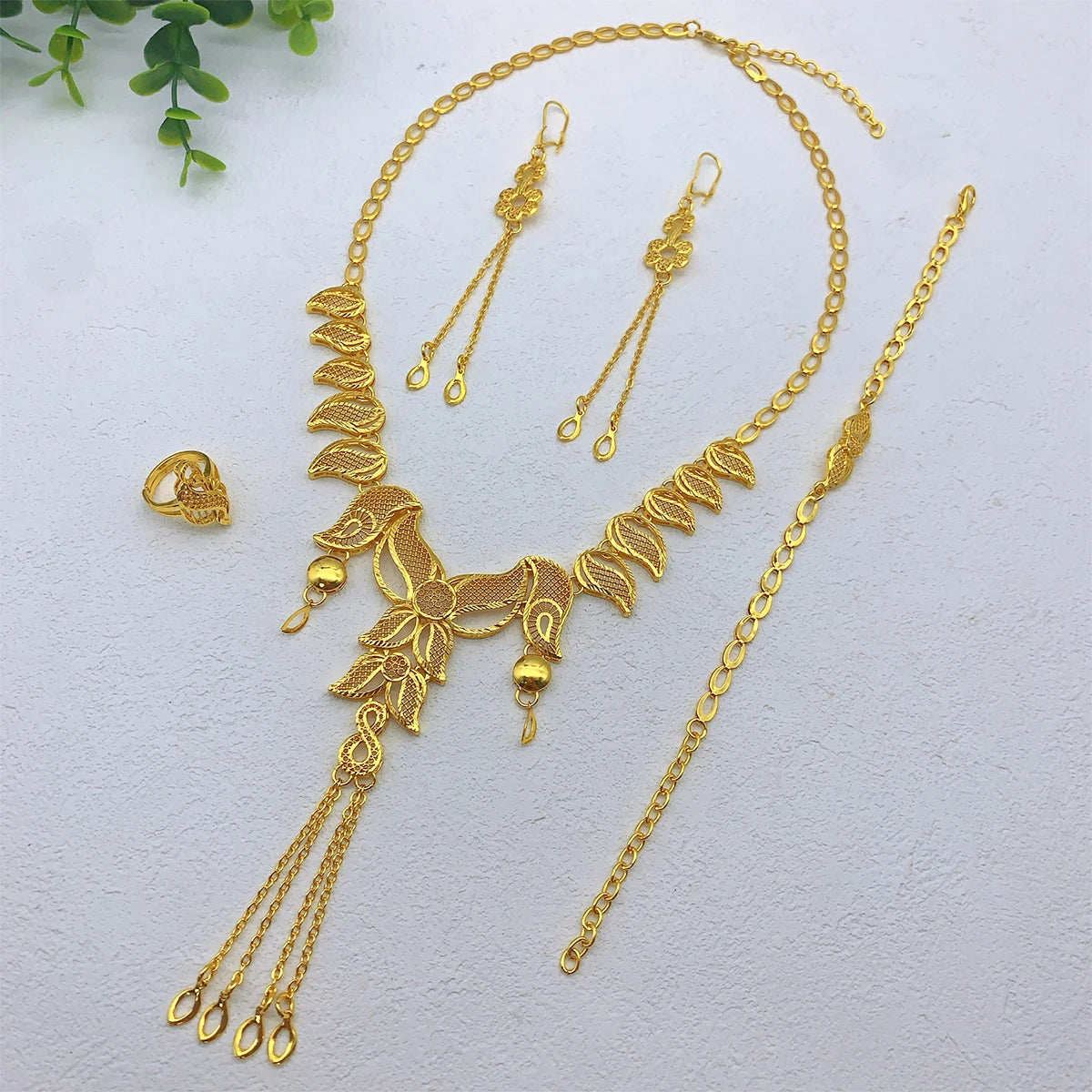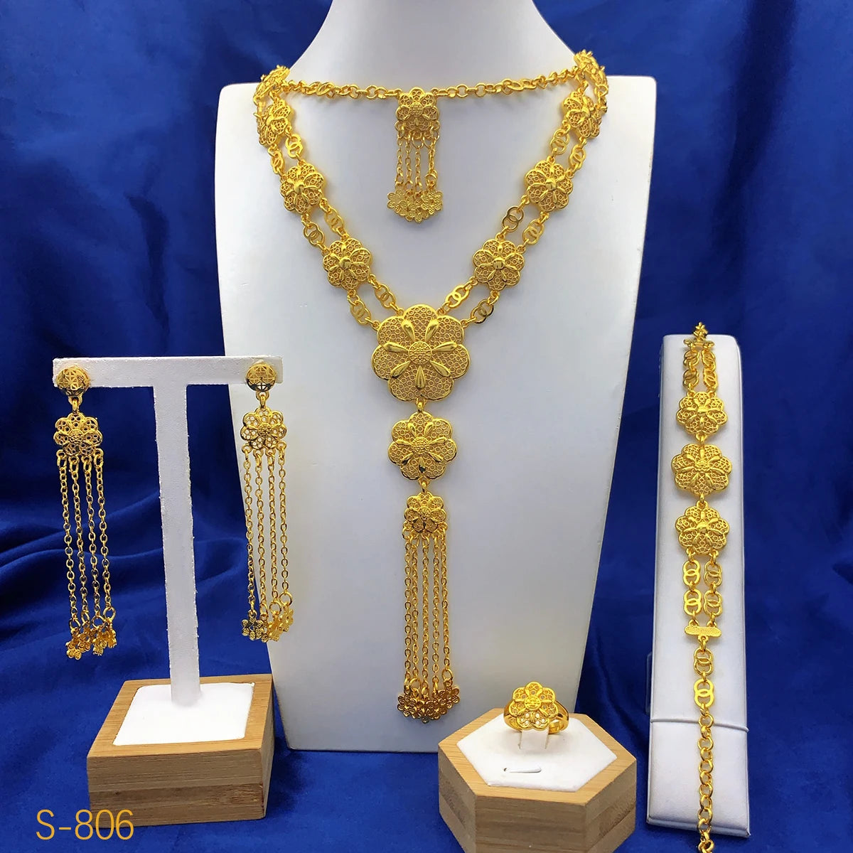 Ett komplett lyxigt smyckesset med fyra matchande delar i äkta Dubai-kvalitet. Perfekt för bröllop, fester och speciella tillfällen där du vill göra ett oförglömligt intryck.