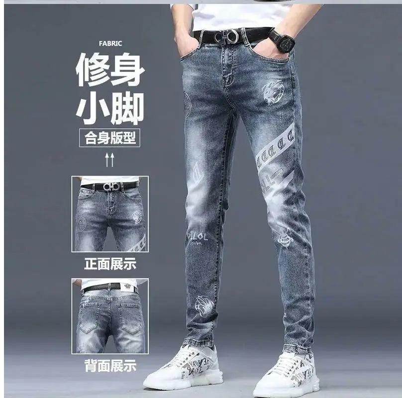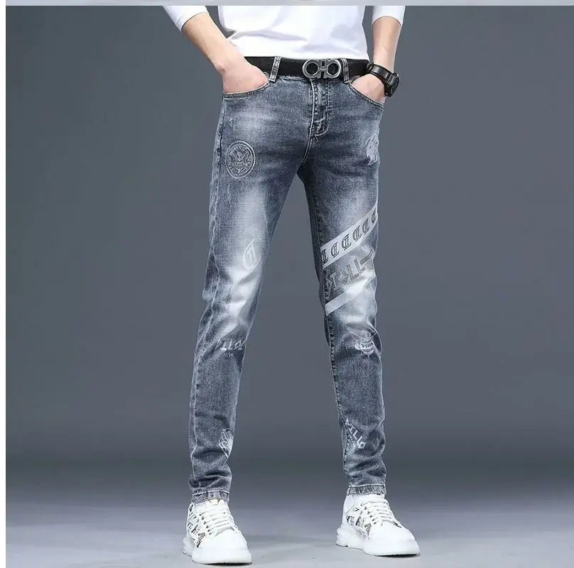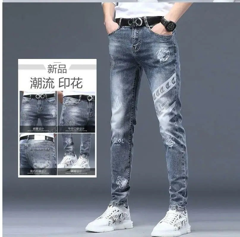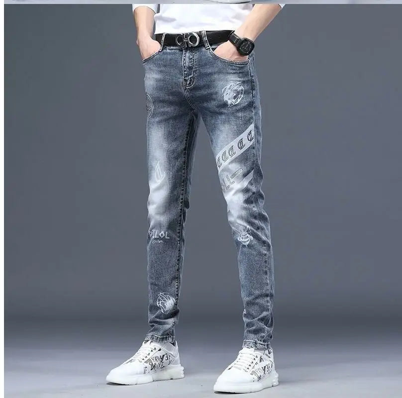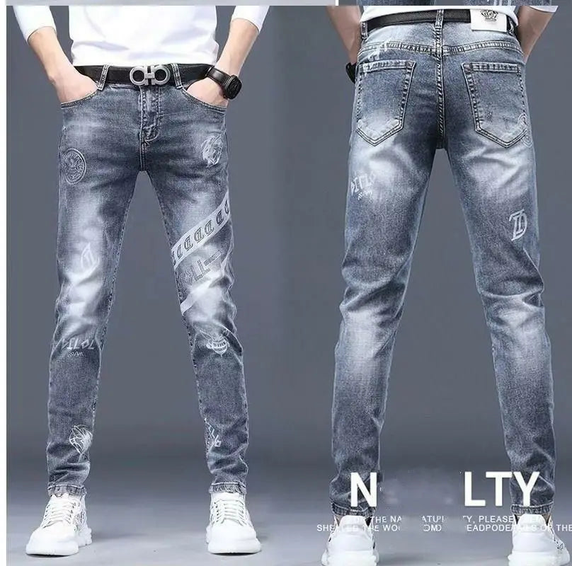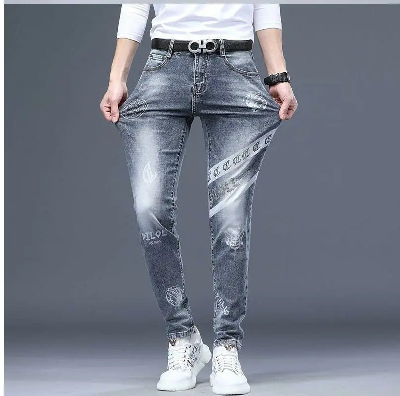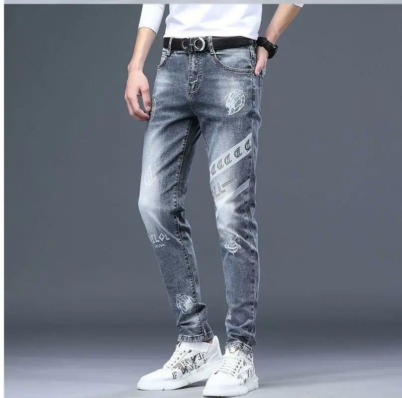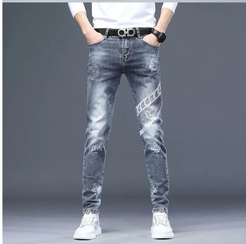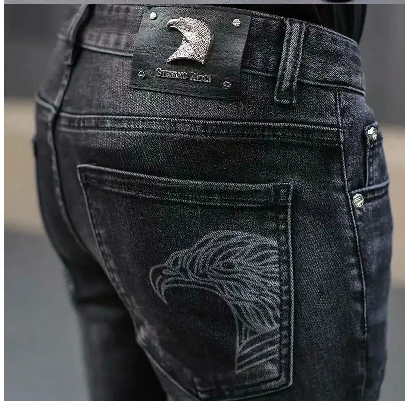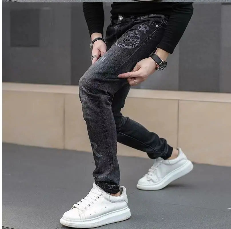 Exklusiva Svarta Herrjeans med Unikt Tryck – Premium Stretch Denim