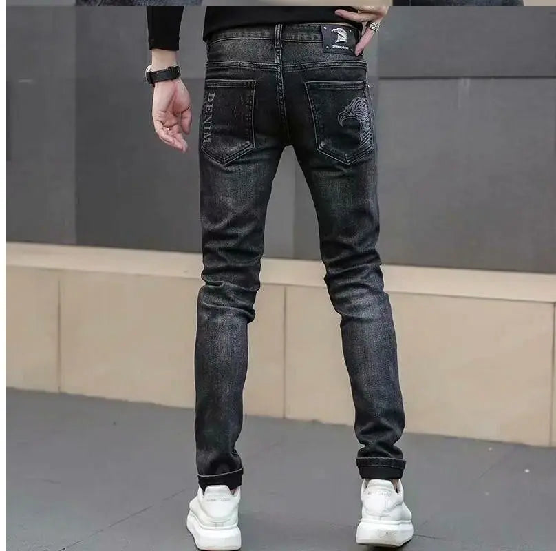Svarta Herrjeans Slim Fit – Premium Stretch med Unikt Tryck