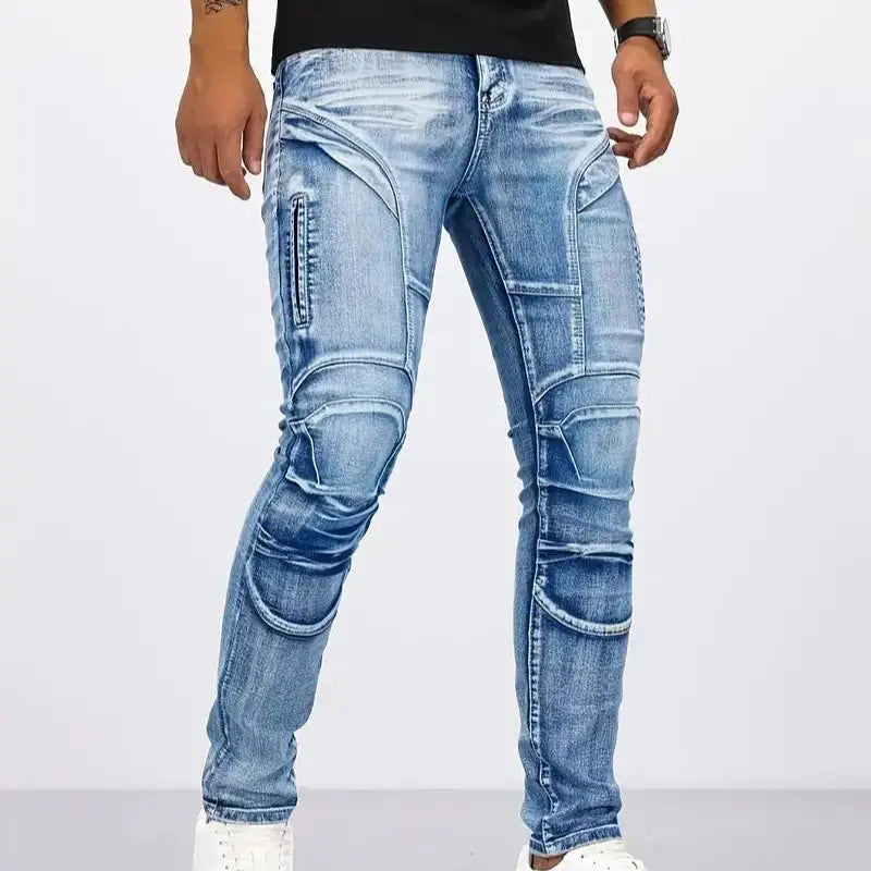 Distressed Patchwork Jeans Herr – Slim Fit Denim