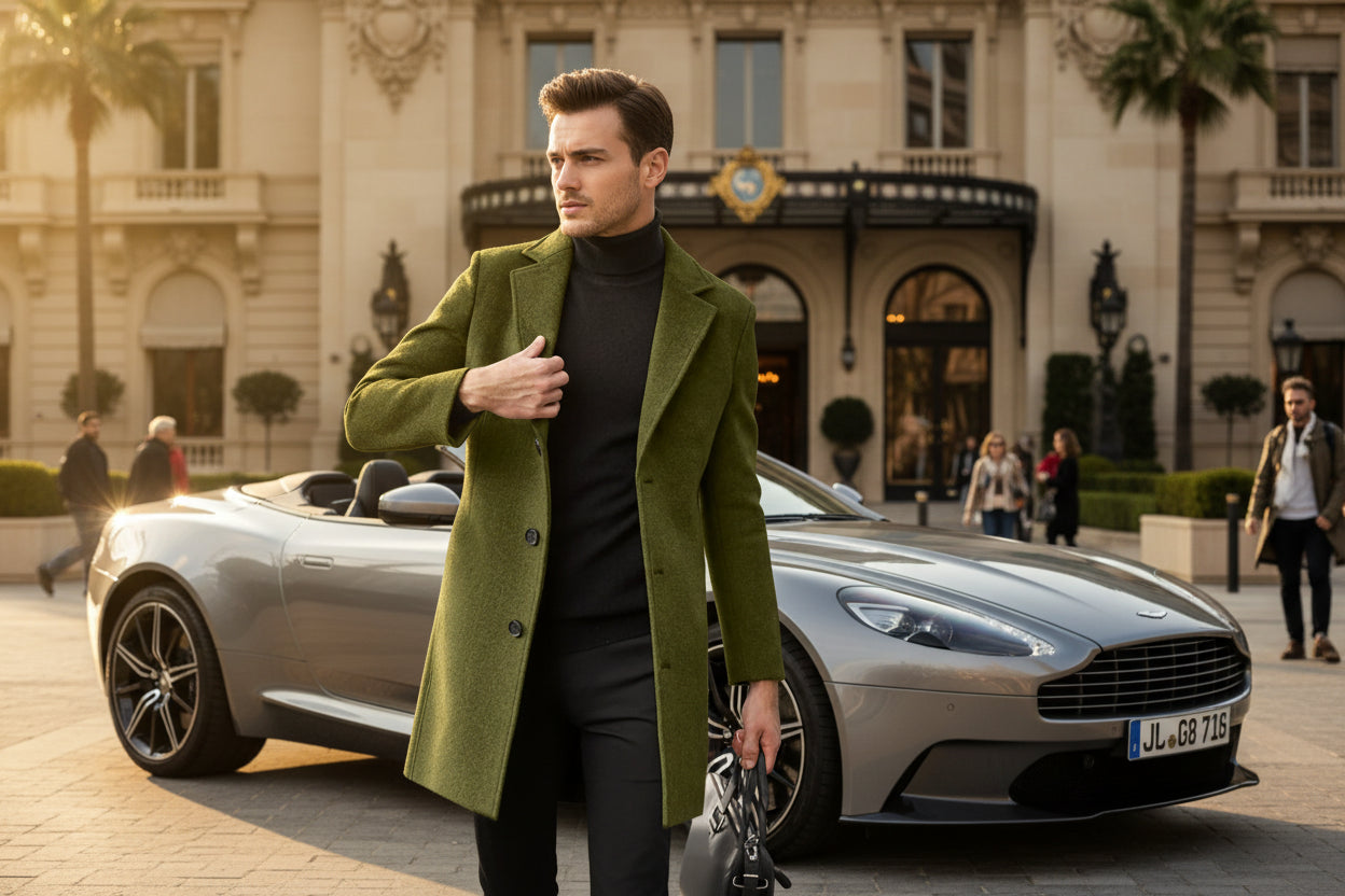 Elegant herrrock i exklusiv ullmix som kombinerar modern business-stil med bekväm vardagskänsla. Denna stilrena trenchcoat/overcoat är designad för 2025 och passar perfekt för arbete, möten och ledig tid. Ett mångsidigt ytterplagg för män som vill ha en tidlös look med en modern touch – lätt att matcha både formellt och avslappnat, säsong efter säsong.