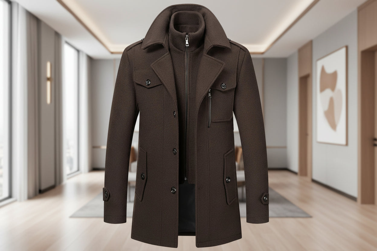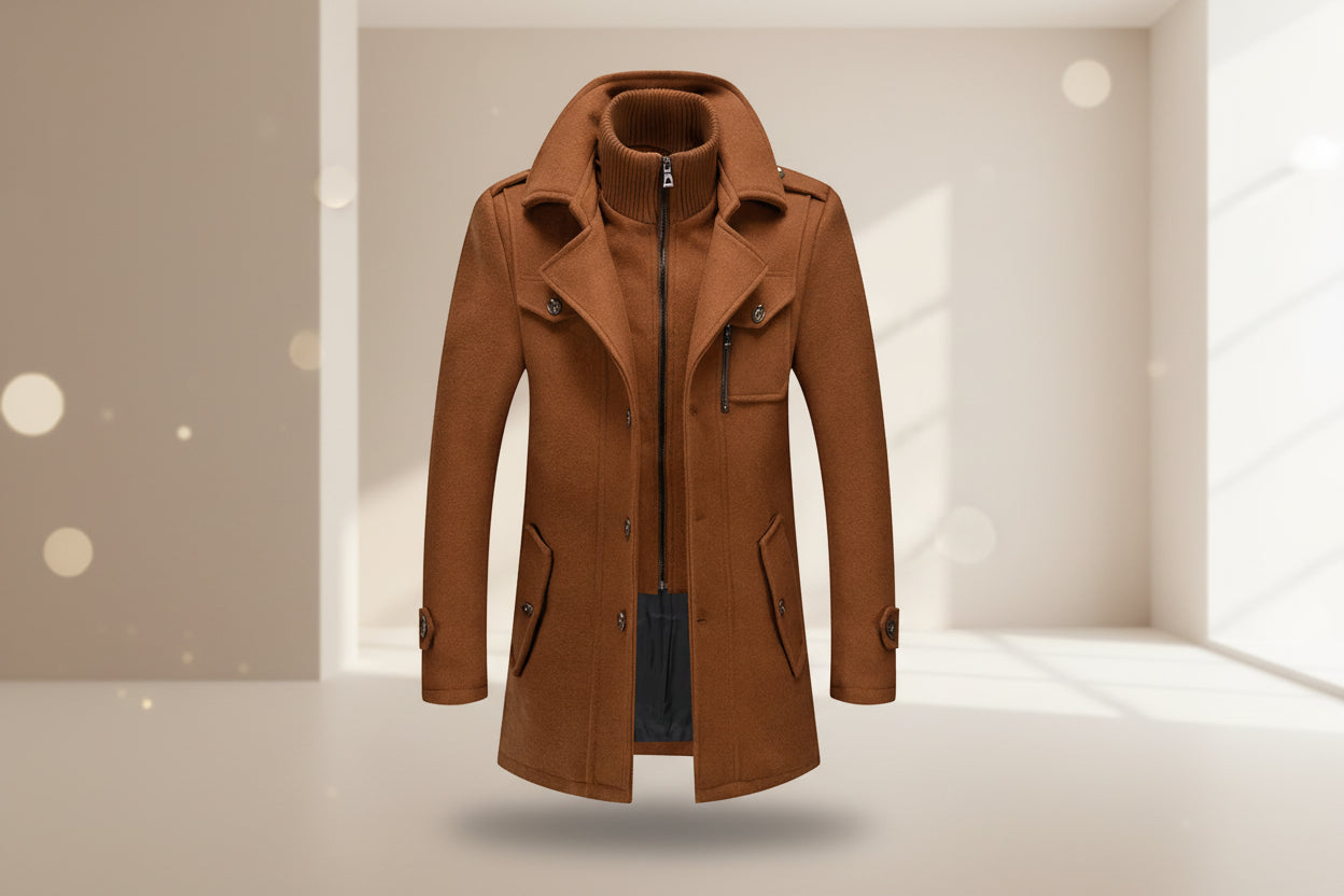Den här rocken är gjord för män som vill utstråla självsäkerhet och klass – utan att kompromissa med komfort. Den mjuka ull- och cashmere-blandningen ger värme utan tyngd, medan den dubbla kragen och långa designen tillför en lyxig, tidlös känsla. Det är inte bara ett ytterplagg – det är ett statement.