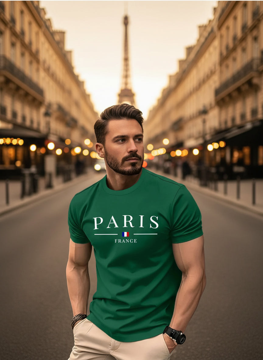Känn sommarens komfort med denna trendiga T-shirt i 100% bomull. Löst sittande design och snygg Paris-print gör den perfekt för vardag, sport och fritid.