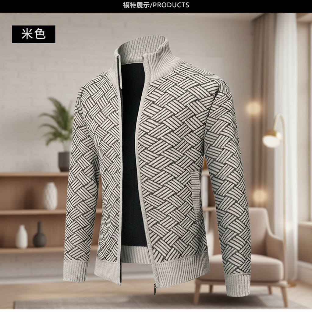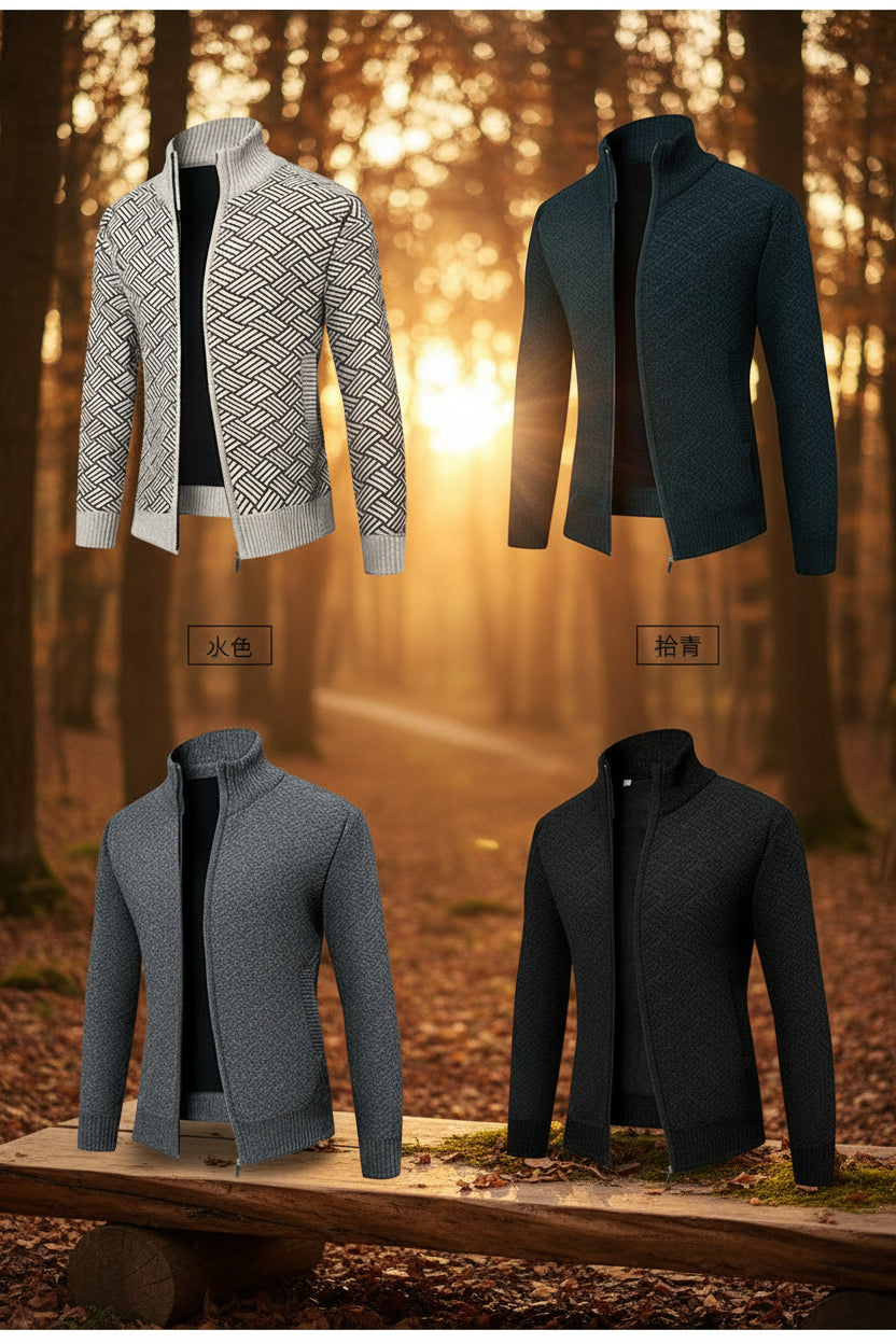 Upptäck en lyxig och trendig zip-up cardigan med tjock sammet och modern koreansk-japansk design. Denna premiumstickade tröja kombinerar komfort, värme och stil – perfekt för casual outfits och modeåret 2025. Ett måste för modemedvetna män som vill ha kvalitet och unik look