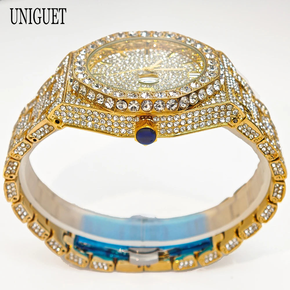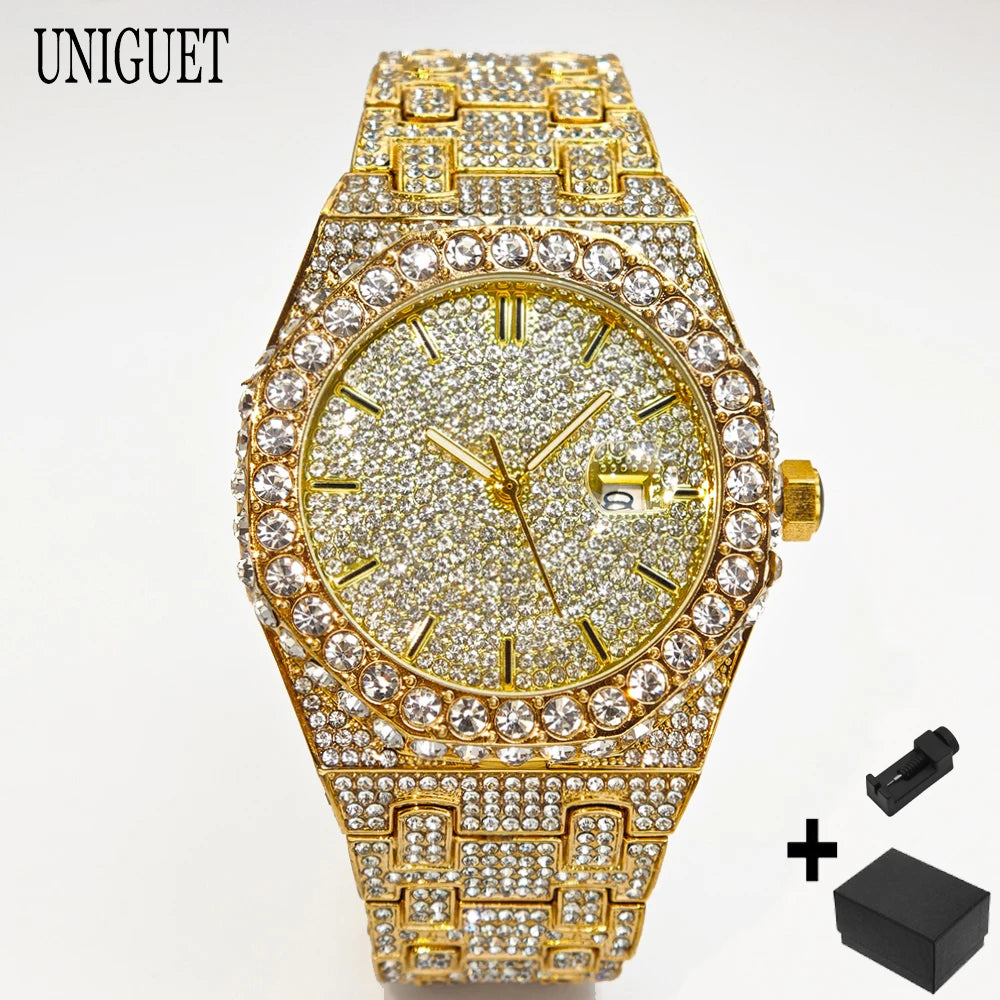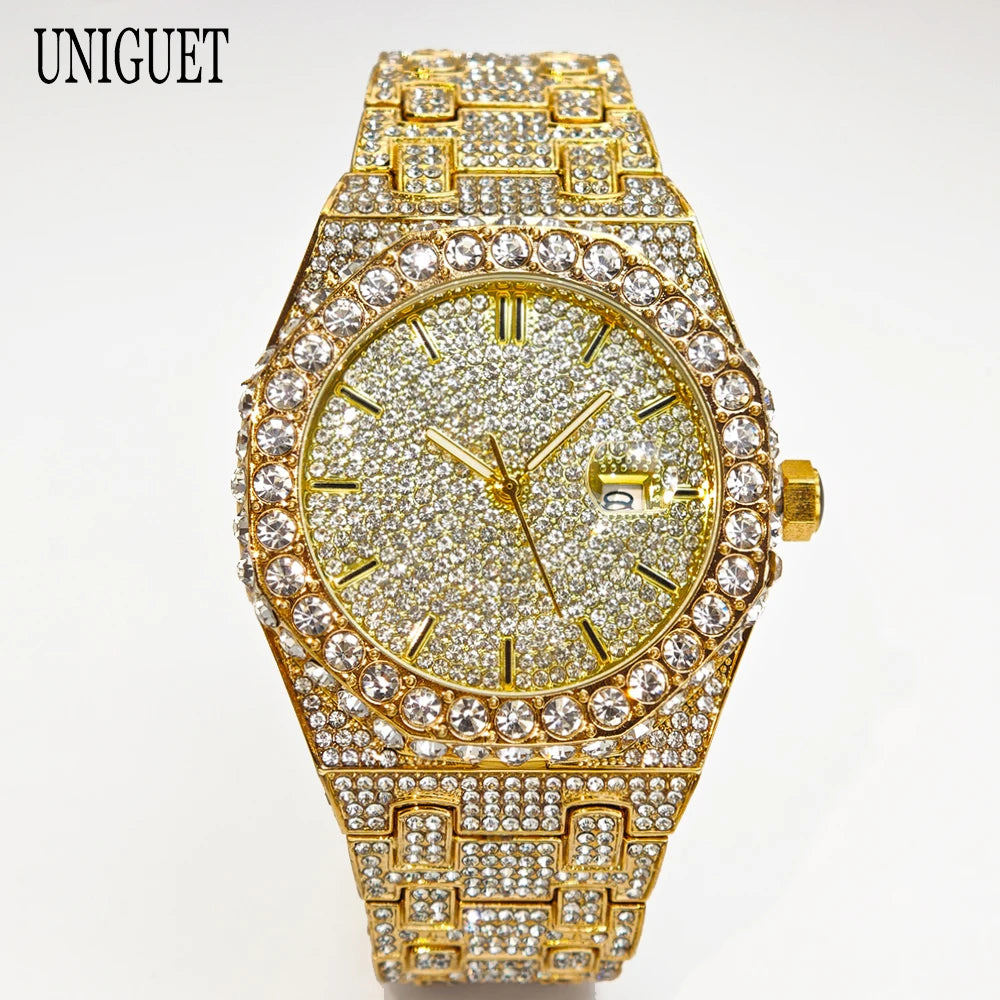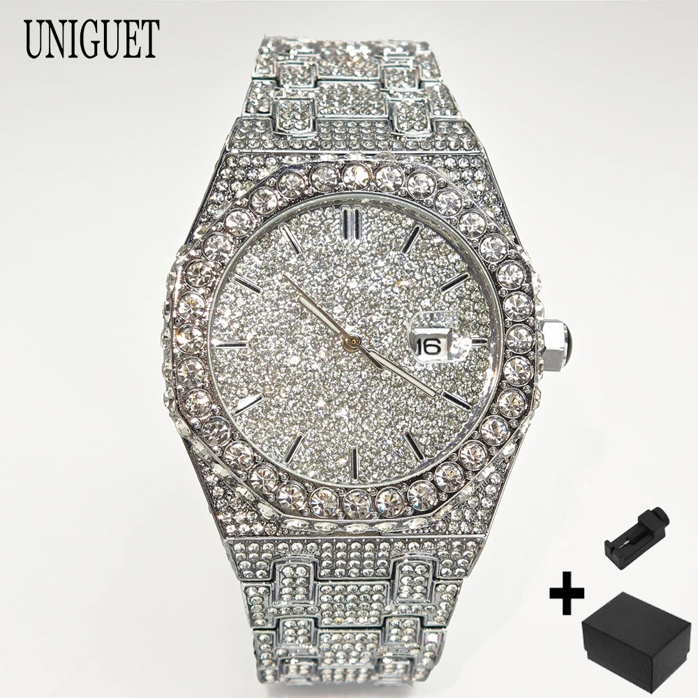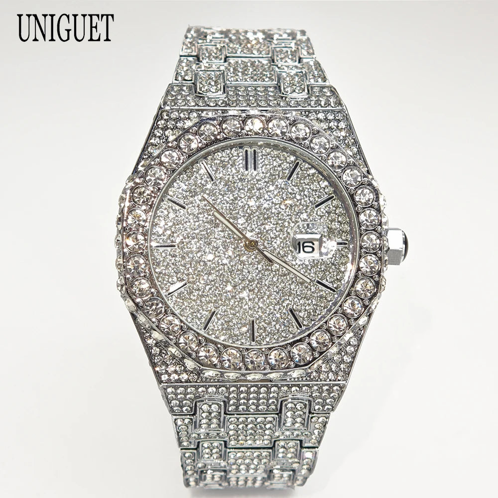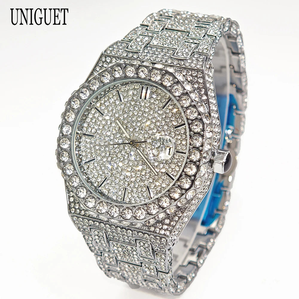 UNIGUET 2025 är den ultimata hip hop-lyxklockan som kombinerar maximal bling med äkta kvalitet. Denna iögonfallande herrur med strålande diamanter och premium finish är skapad för män som vågar sticka ut och älskar att göra ett statement.