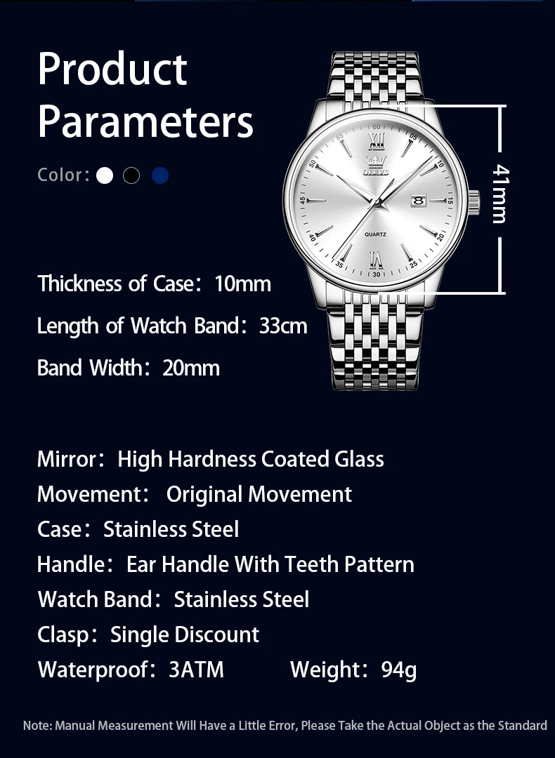 Med vattentålighet upp till 3 BAR klarar klockan vardagliga situationer som regn och handtvätt. OLEVS herrklocka är det perfekta valet för både affärsmöten, formella tillfällen och stilmedveten vardagsanvändning.