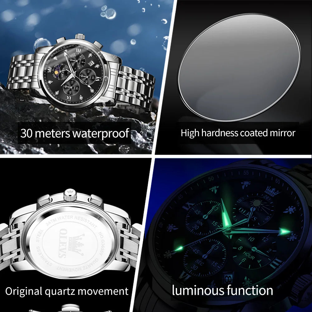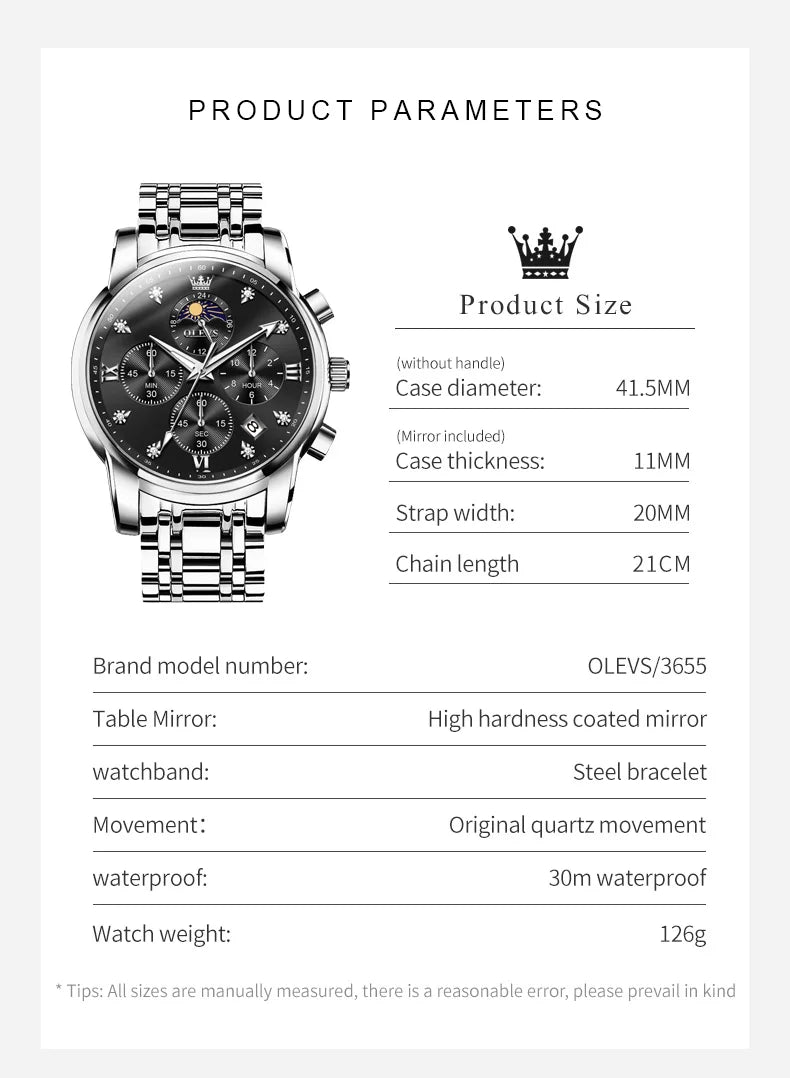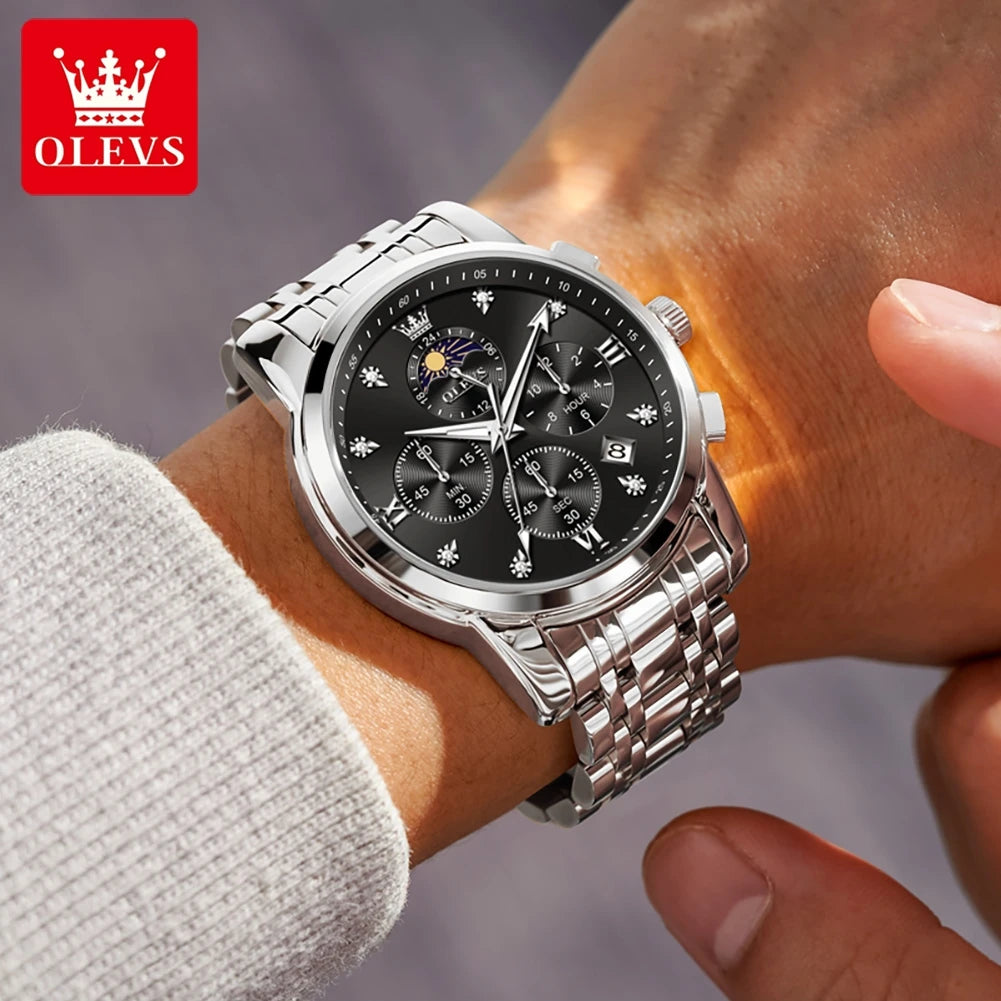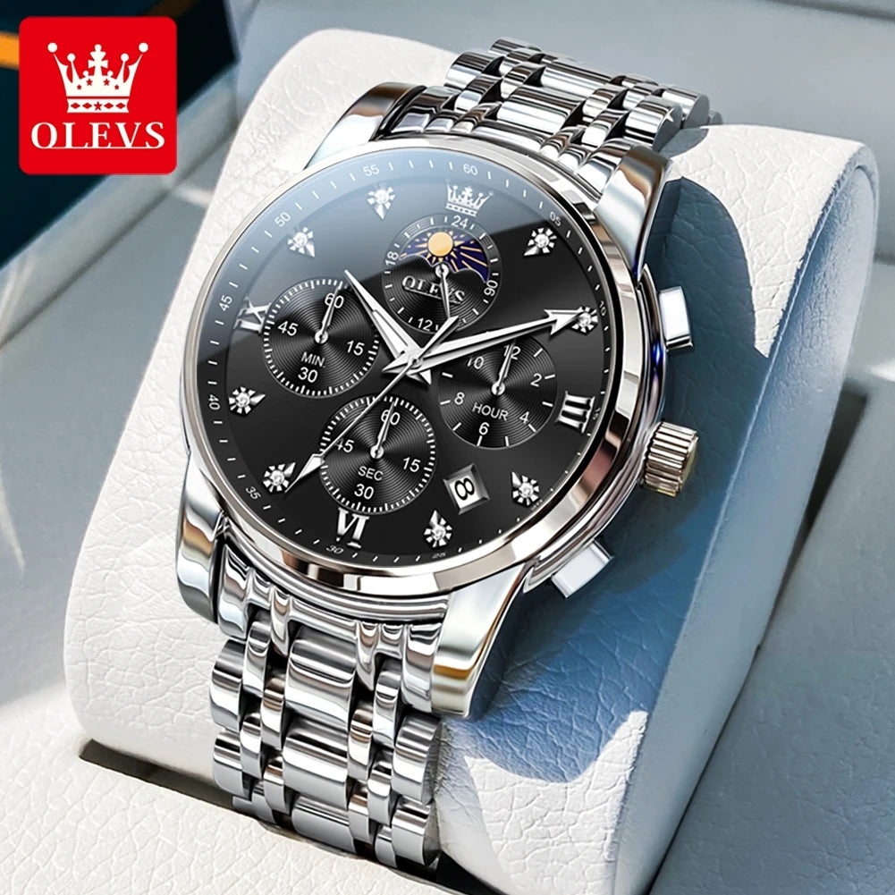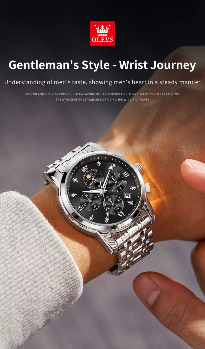 ⚠️ BRÅDSKANDE: Endast 2 dagar kvar till jul! Begränsat antal i lager. OLEVS 3655 är en av våra mest exklusiva månfas-kronografklockor och den perfekta julklappen till mannen som har allt. Beställ NU för leverans innan jul! Säkra din idag och ge bort (eller unna dig själv) ett stycke klockkonst som kommer uppskattas i åratal. Detta är klockan som kombinerar månfas, kronograf och automatisk datum - äkta klockkonst till otroligt pris! 🌙✨🎄