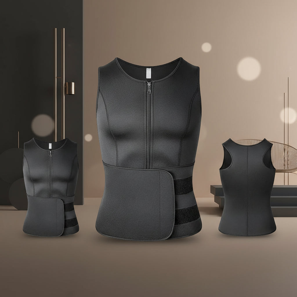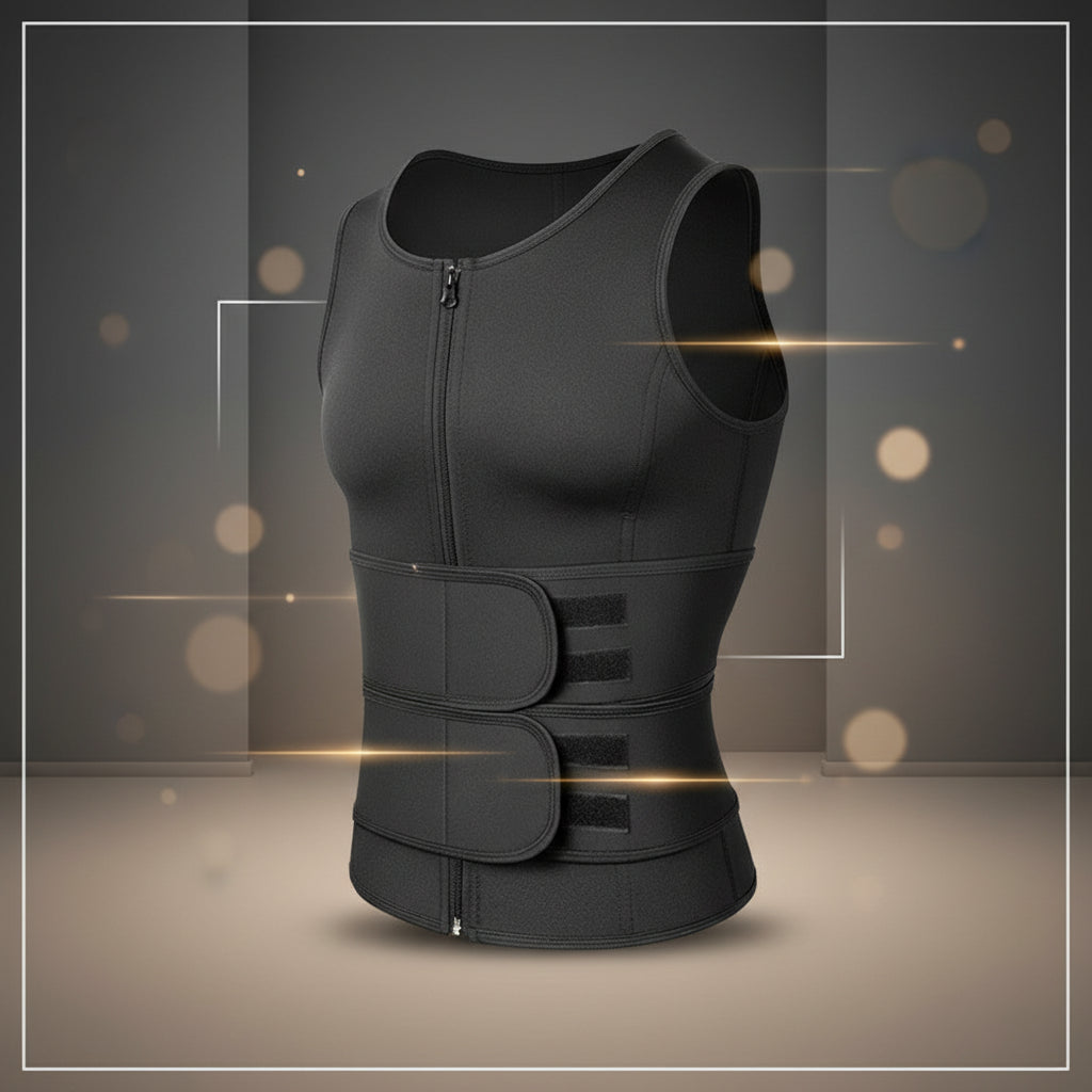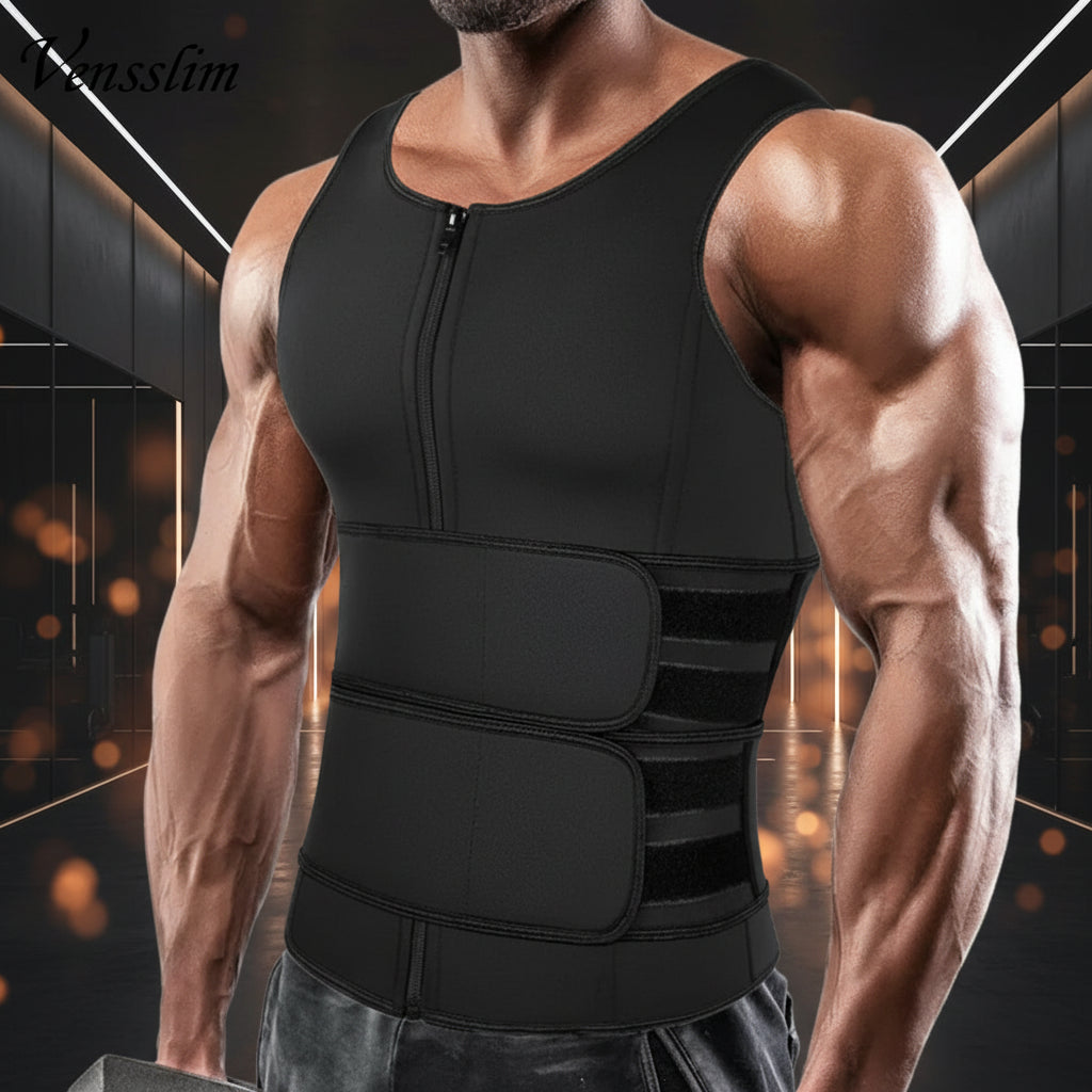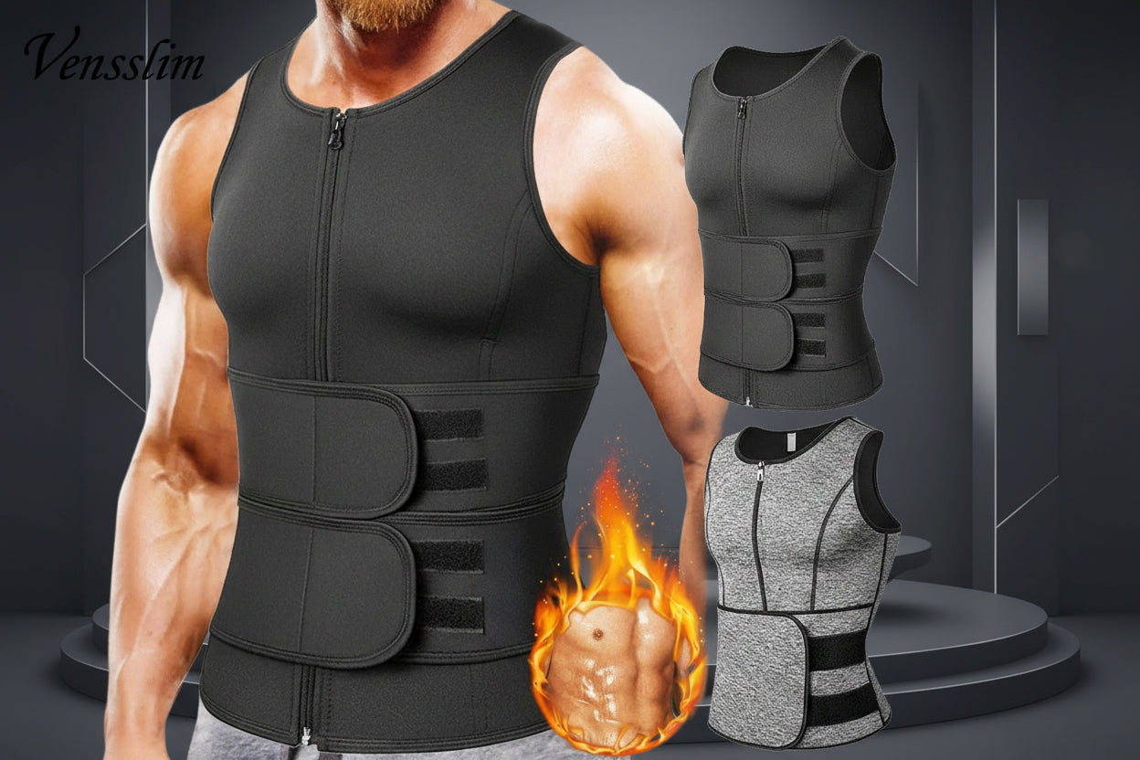 Forma kroppen och maximera din träning! Denna slimmande herrväst fungerar som waist trainer, kompressionströja och svettstimulerande topp för effektiv fettförbränning.
