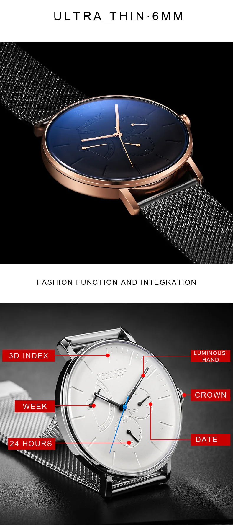Upptäck den perfekta kombinationen av elegans och precision med denna exklusiva MANFEIGE-klocka. Med sitt ultratunna japanska urverk representerar den toppen av klockkonst.