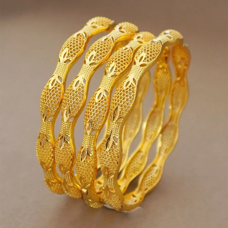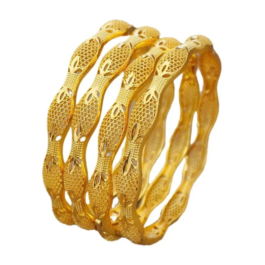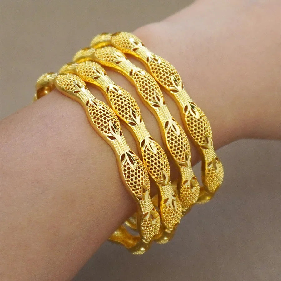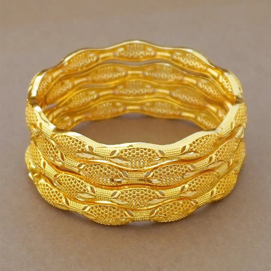 Dubai Guldpläterat Koppararmband - Bambuslöv Design Vietnamesiskt Sandguld Damarmband