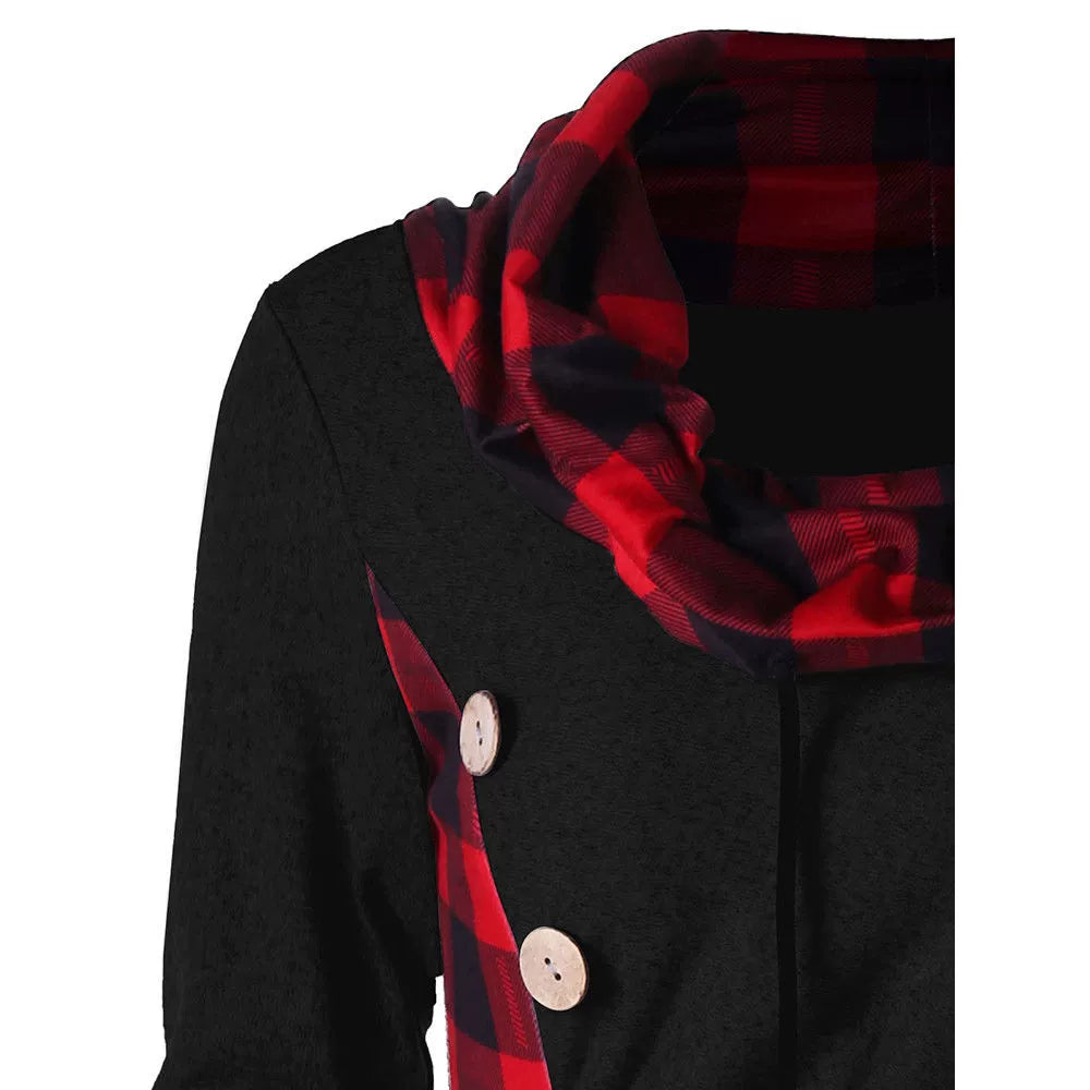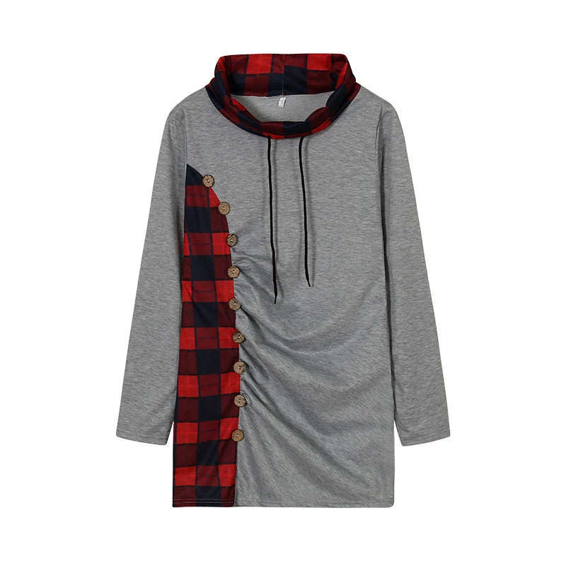 Plaid Button Hoodie – Trendig hipdesign med knappdetaljer