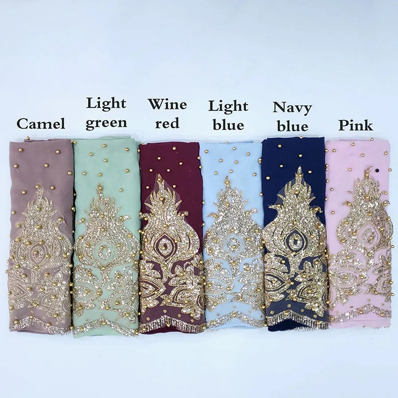 Elegant hijab för kvinnor, tillverkad i lätt chiffon med pärldetaljer. Lång modell som kan användas som underscarf eller huvudduk. Perfekt för böner, vardag eller festliga tillfällen.