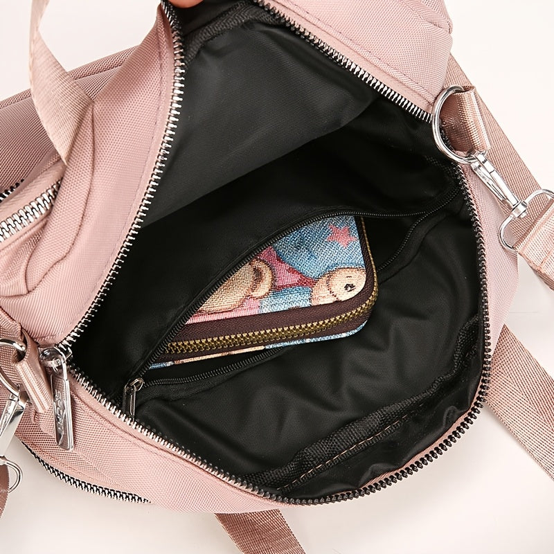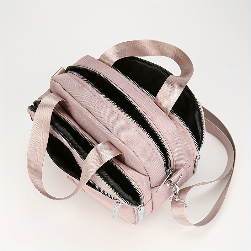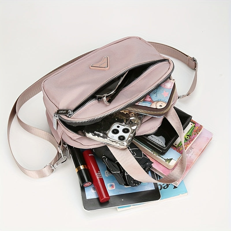 Praktisk och stilren damväska i nylon med minimalistisk design. Justerbar rem, flera dragkedjefack och slitstark polyesterfoder – perfekt för vardag och resa. Finns i svart, beige, rosa & blå.