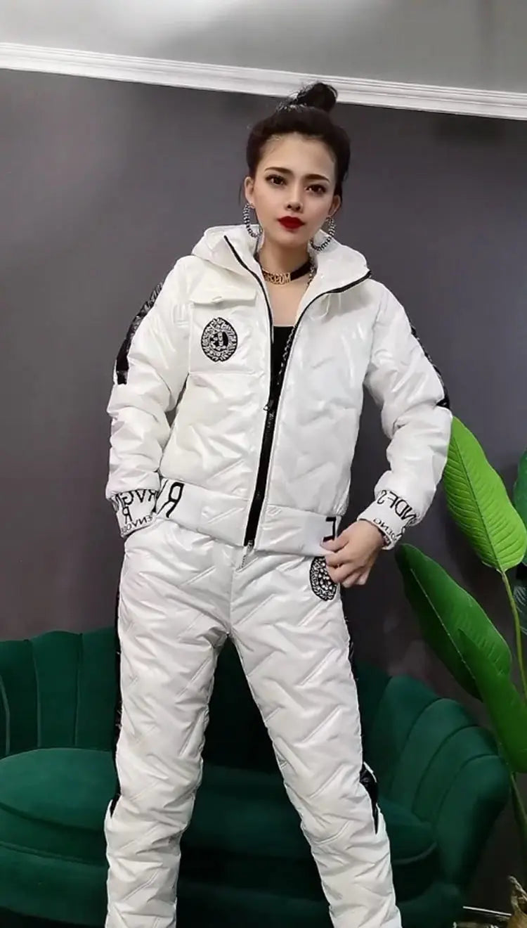 Vinterset för Dam – Glansig Parka & Tjocka Byxor i Oversize Stil