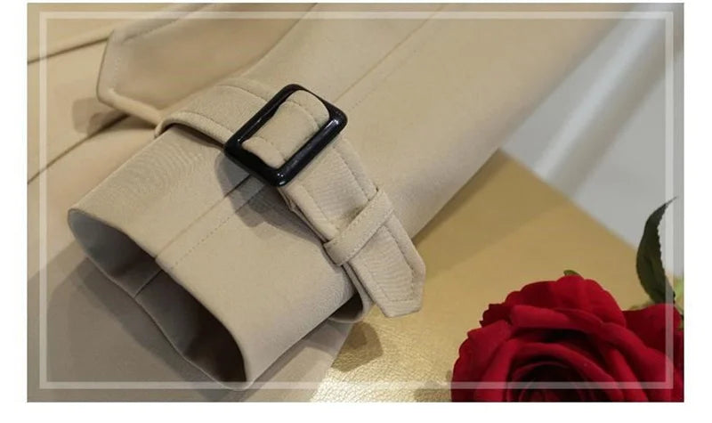 Dam trenchcoat – Lång dubbelknäppt kappa med bälte