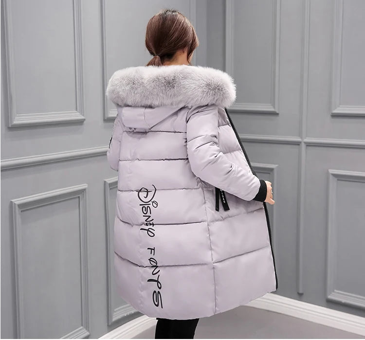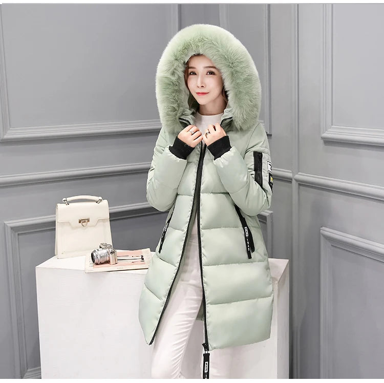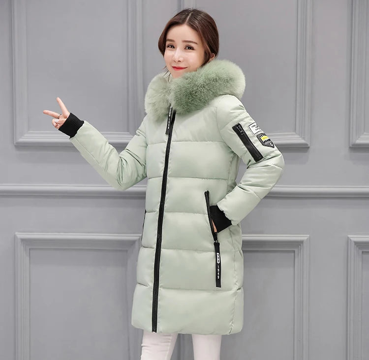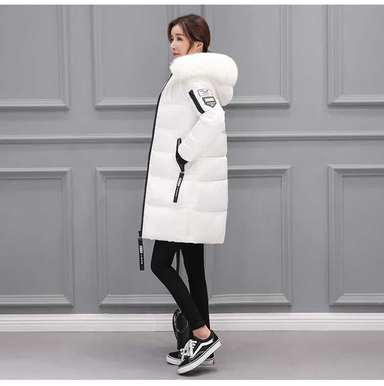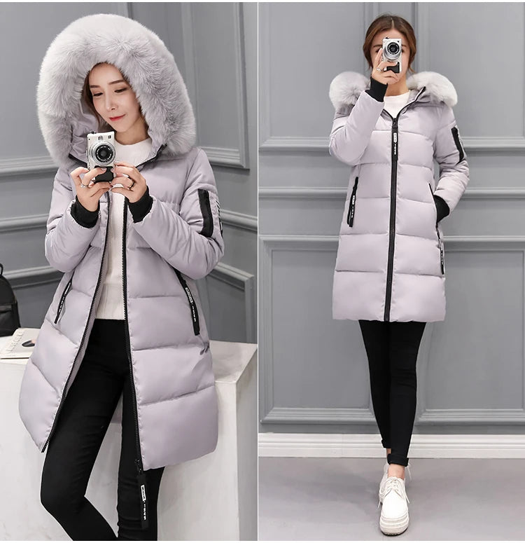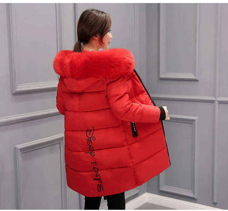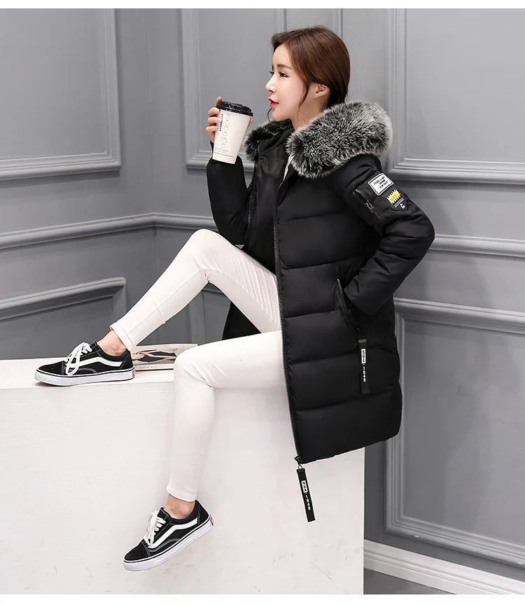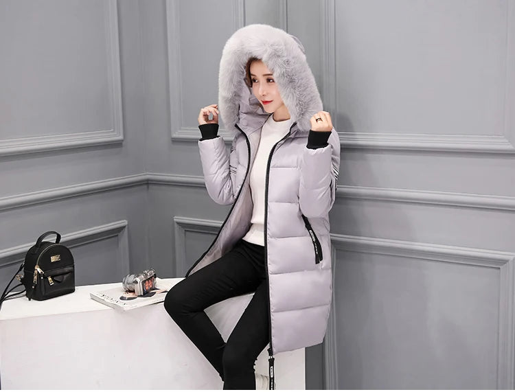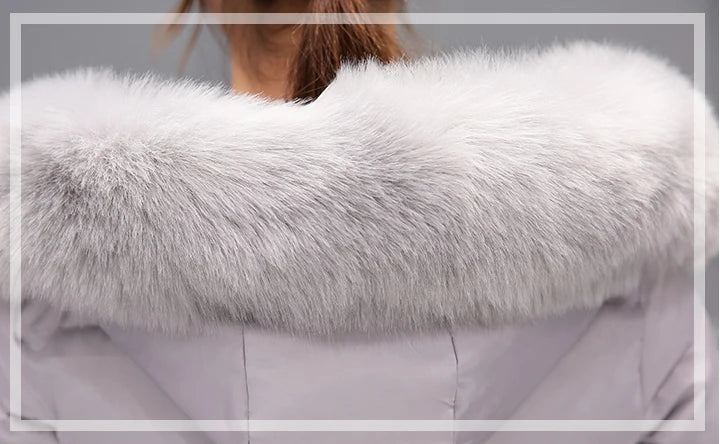 Håll värmen med stil! Denna eleganta koreanska vinterparkas med stor pälskrage och mid-long design kombinerar mode, komfort och funktion – perfekt för kalla dagar.