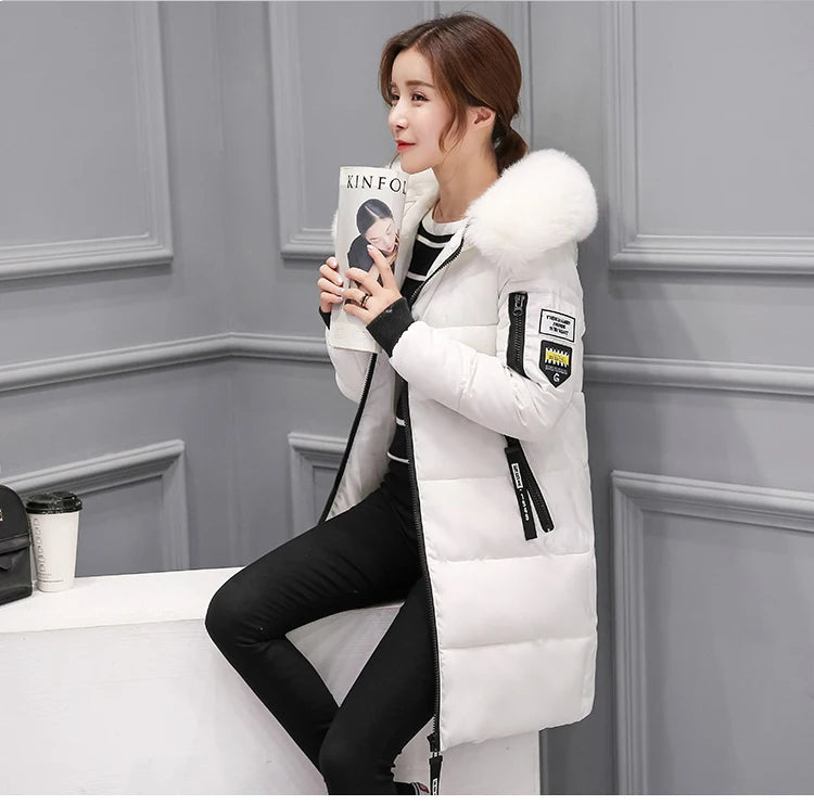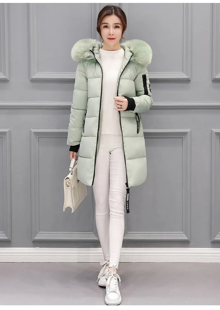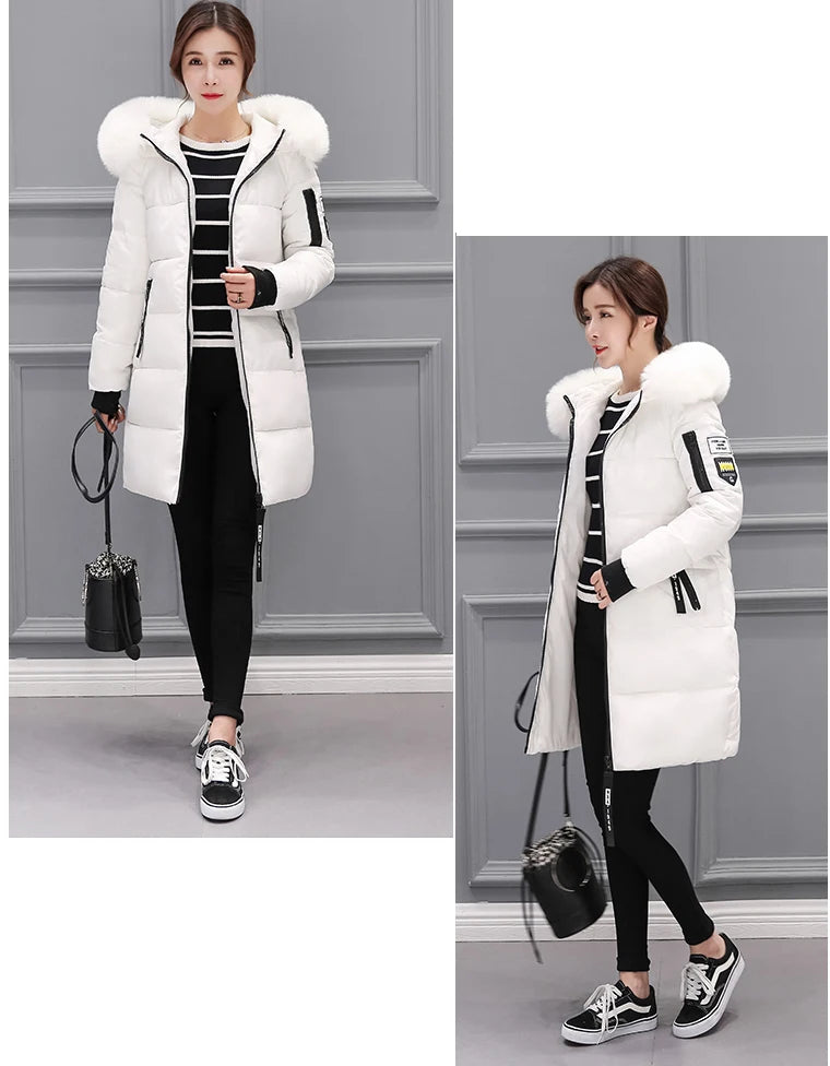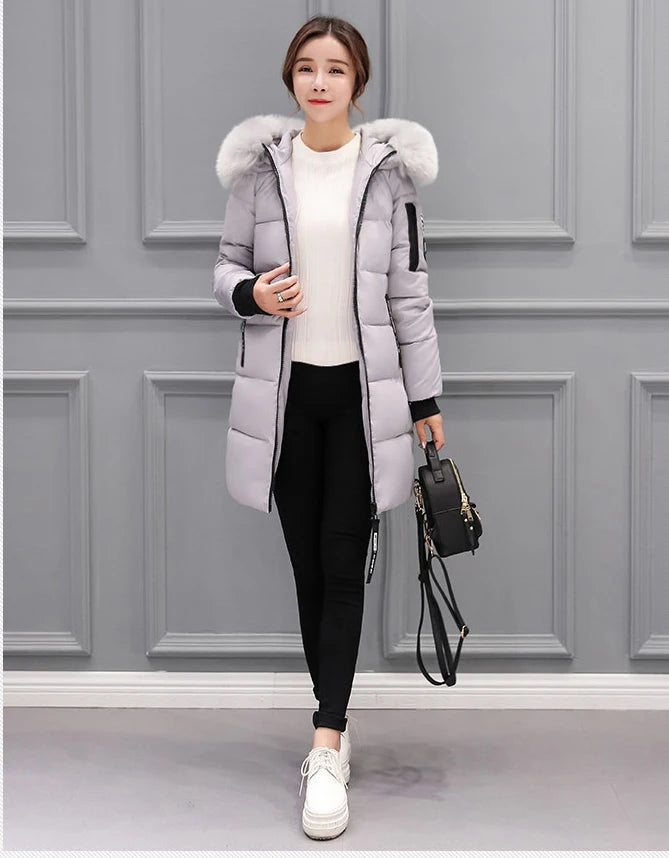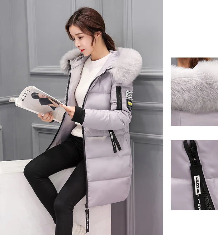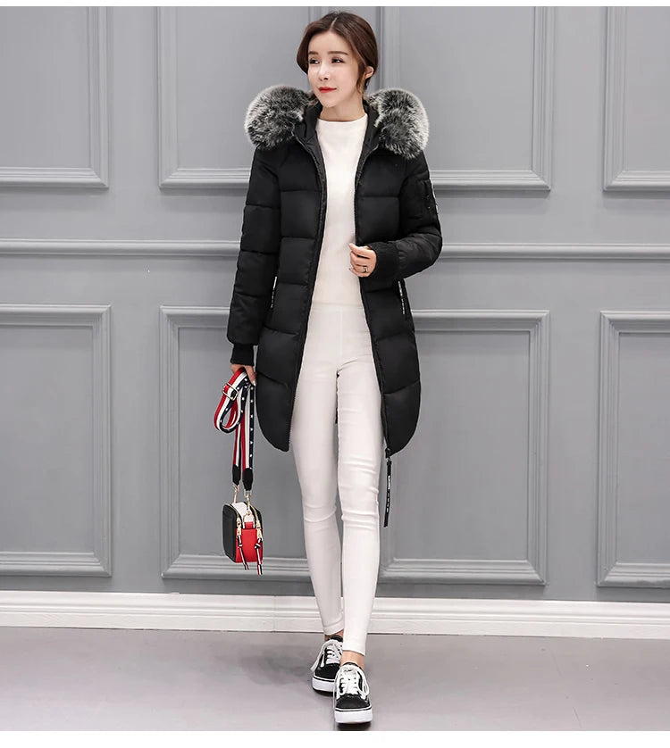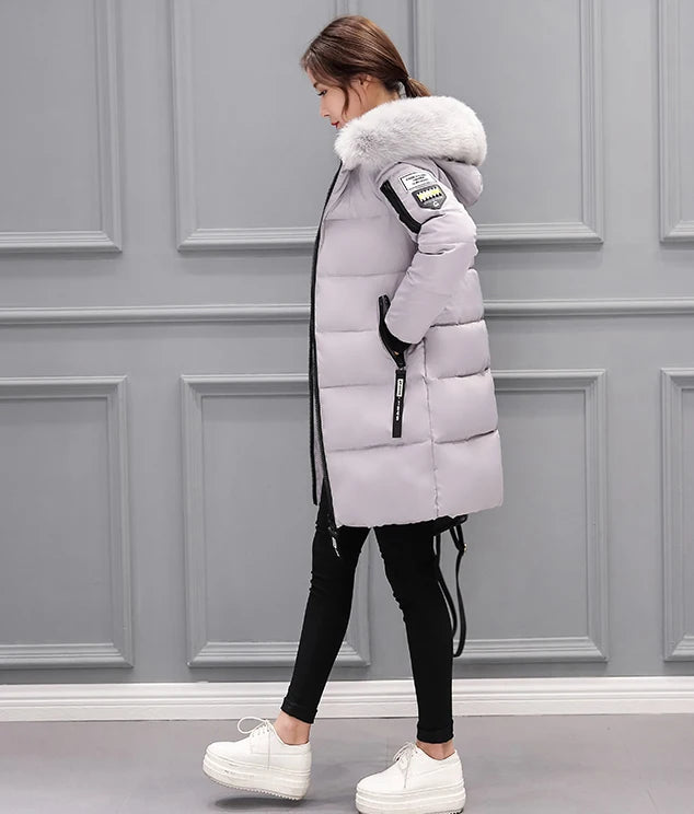 Håll värmen med stil! Denna eleganta koreanska vinterparkas med stor pälskrage och mid-long design kombinerar mode, komfort och funktion – perfekt för kalla dagar.