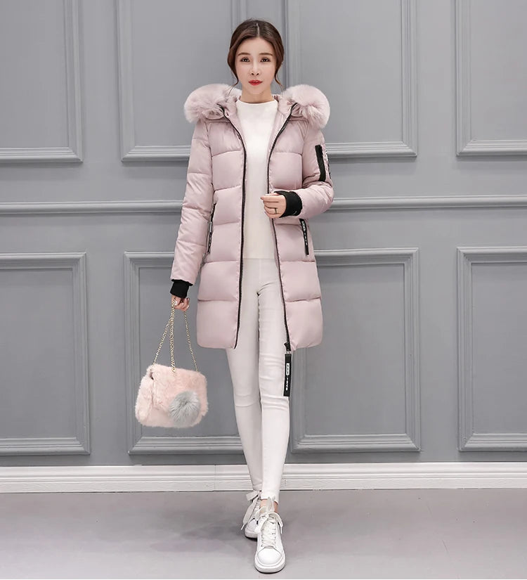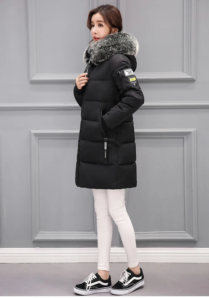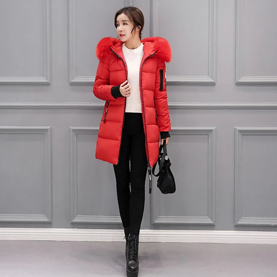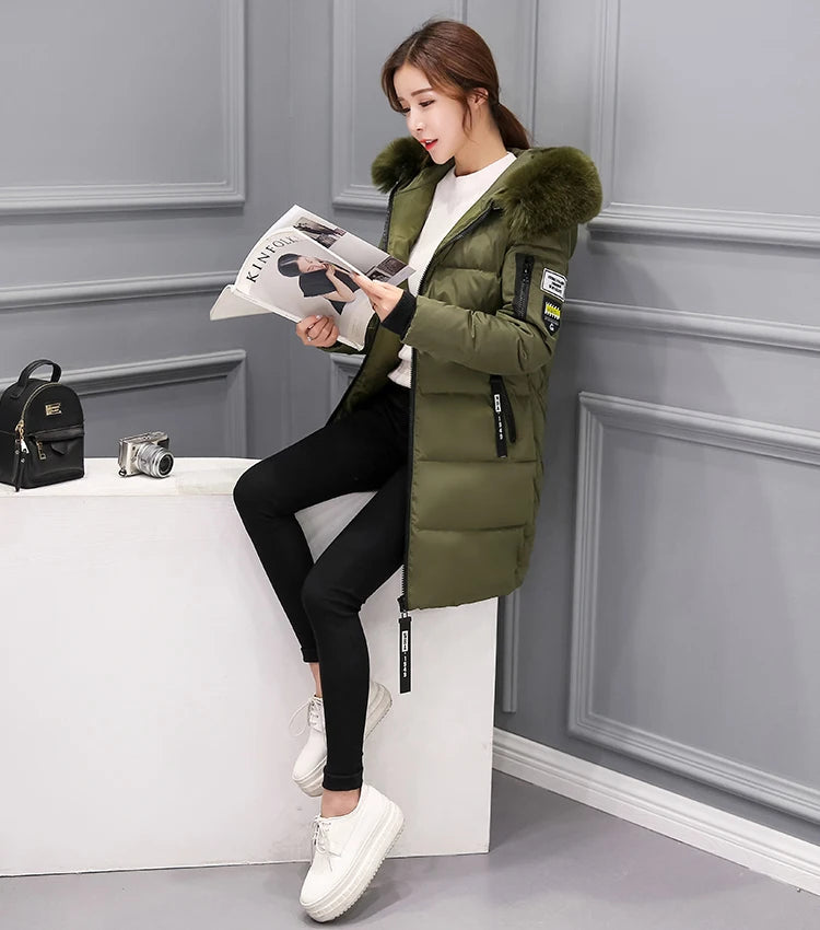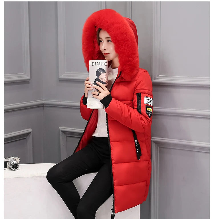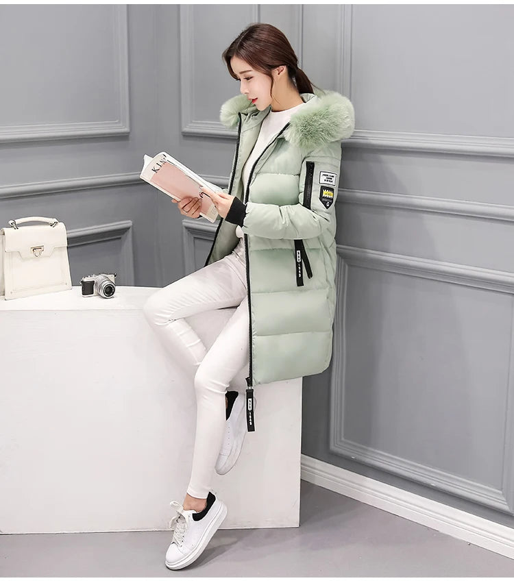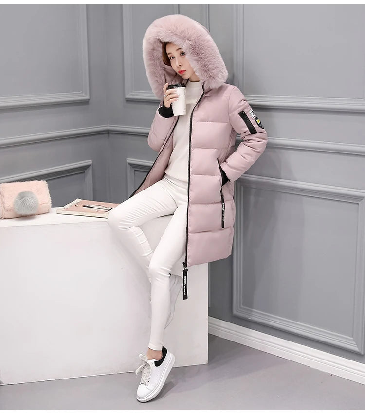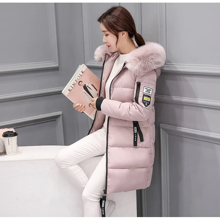 Håll värmen med stil! Denna eleganta koreanska vinterparkas med stor pälskrage och mid-long design kombinerar mode, komfort och funktion – perfekt för kalla dagar.
