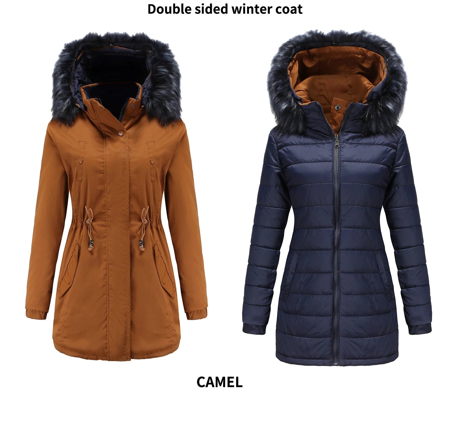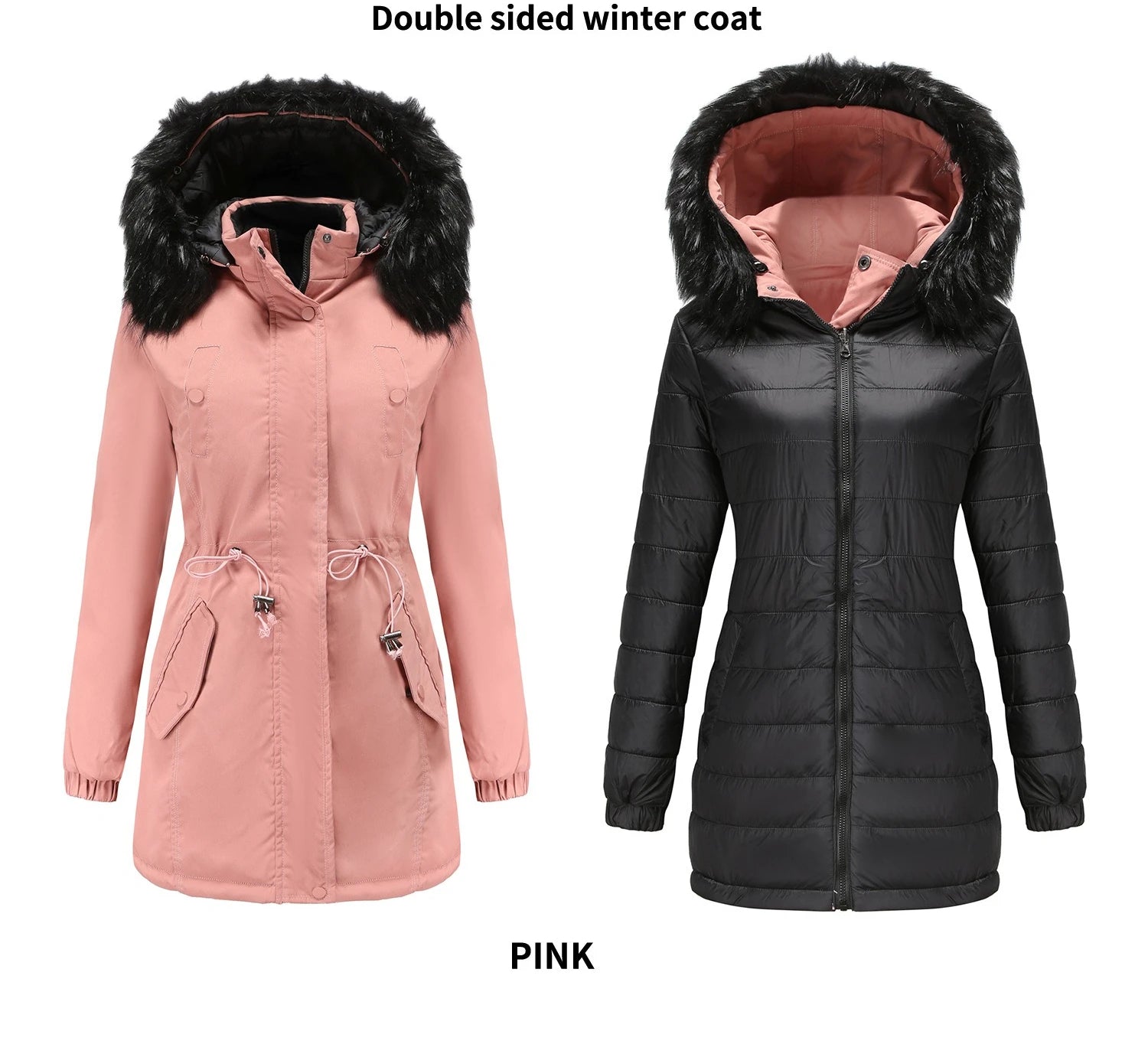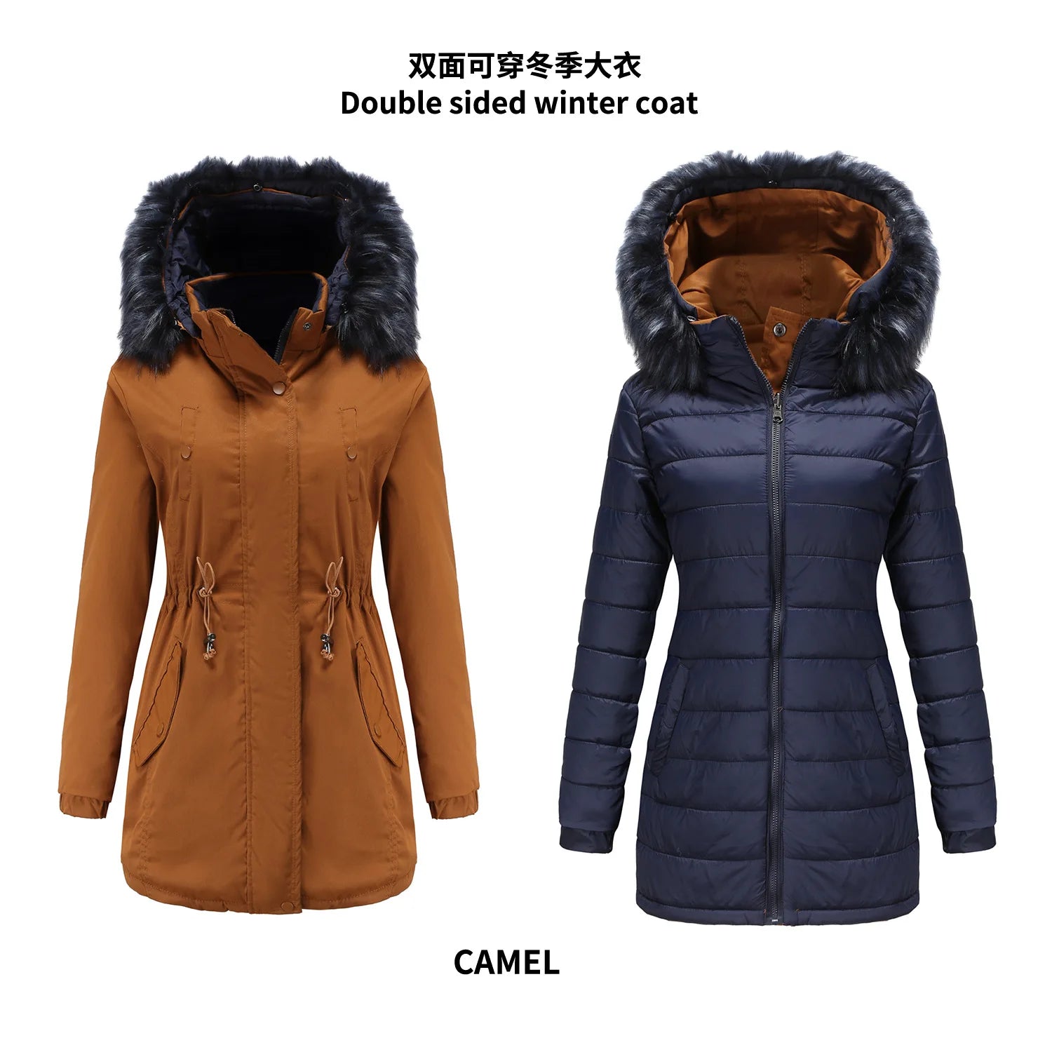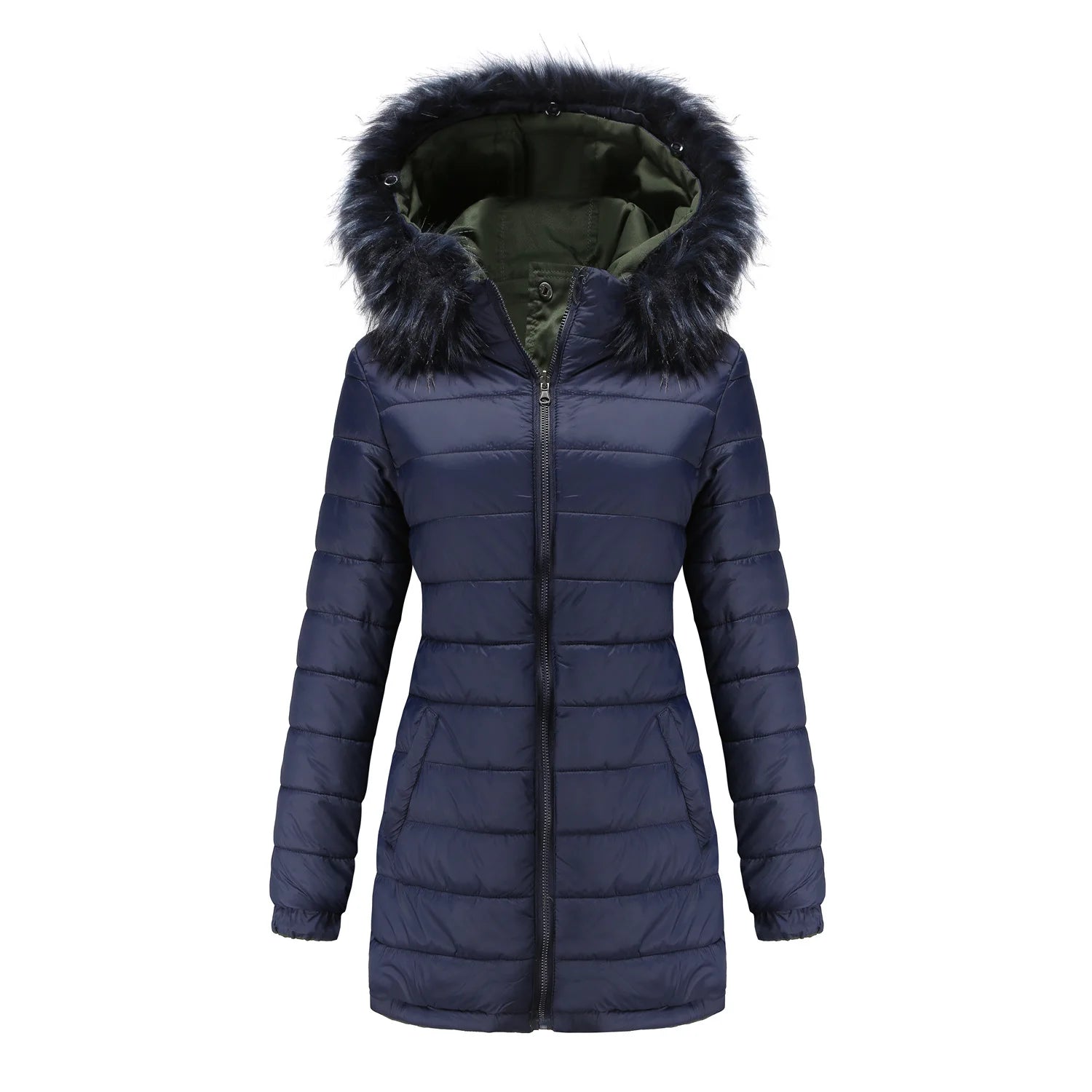 Dam vinterparka – Varm bomullskappa med avtagbar huva