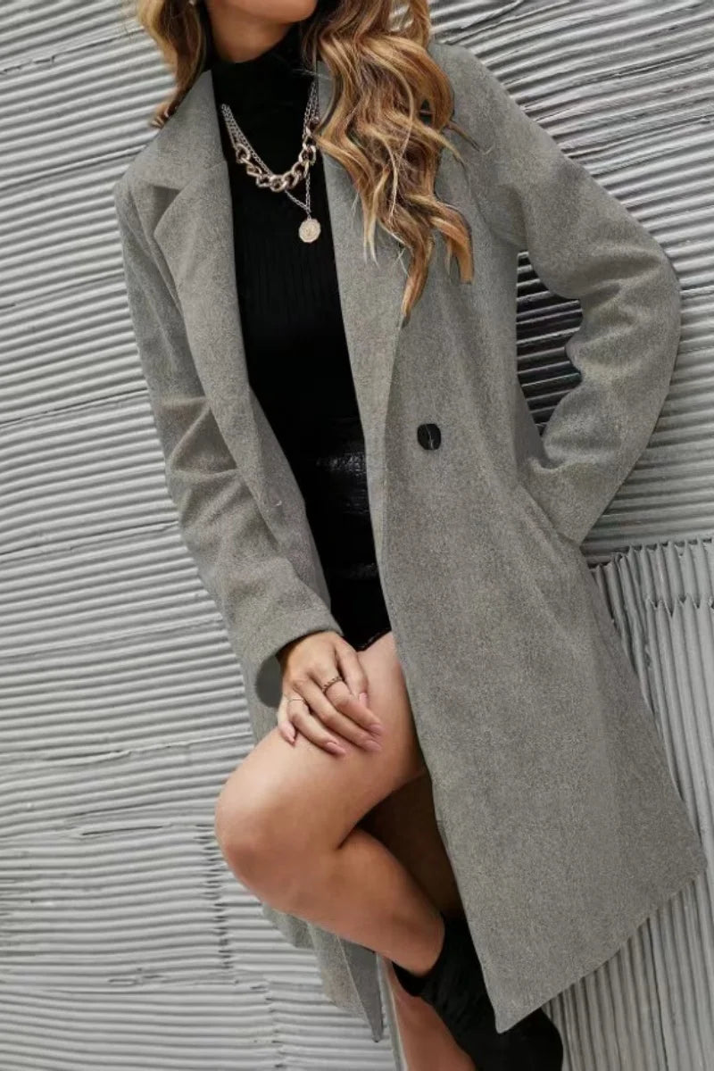 En elegant damkappa i ull med tunn design som ger en sofistikerad och high-end känsla. Inspirerad av koreansk mode, perfekt för höst och vinter. Lång och figurnära passform gör den stilfull både till vardags och mer uppklädda tillfällen.