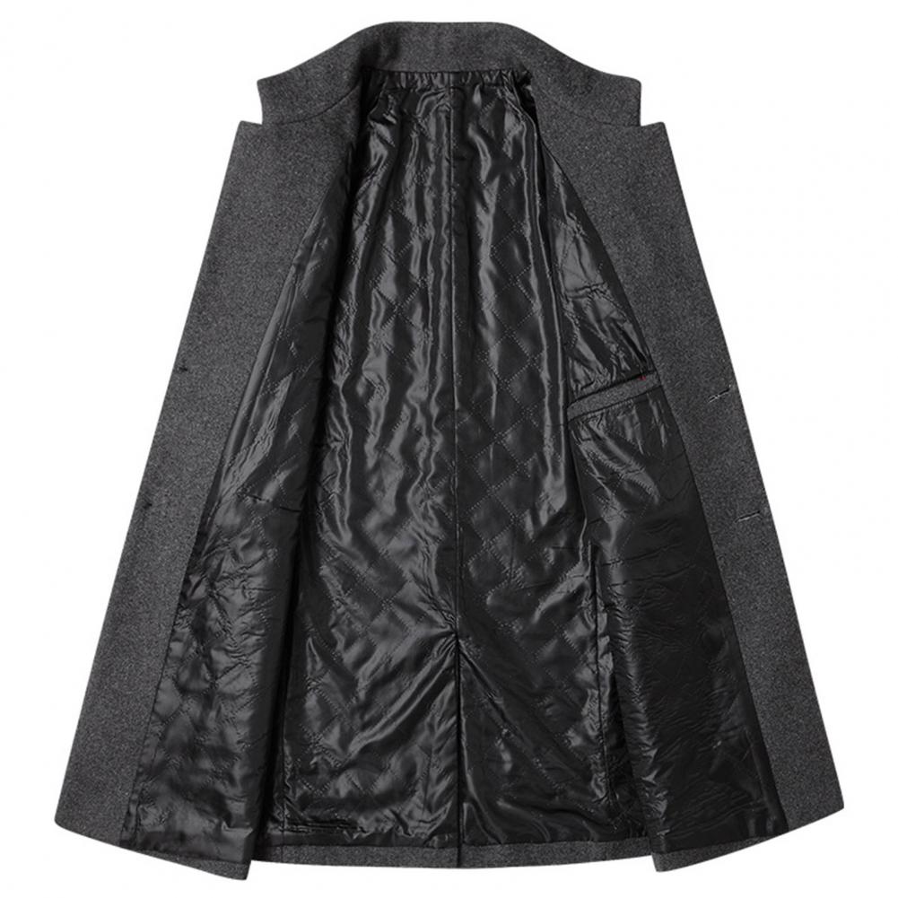 Woolen Coat Male Mid-Length Men Trench Coat Autumn Winter Pockets Single Breasted Slim Fit Windbreaker Coat Men Jacket Outwear